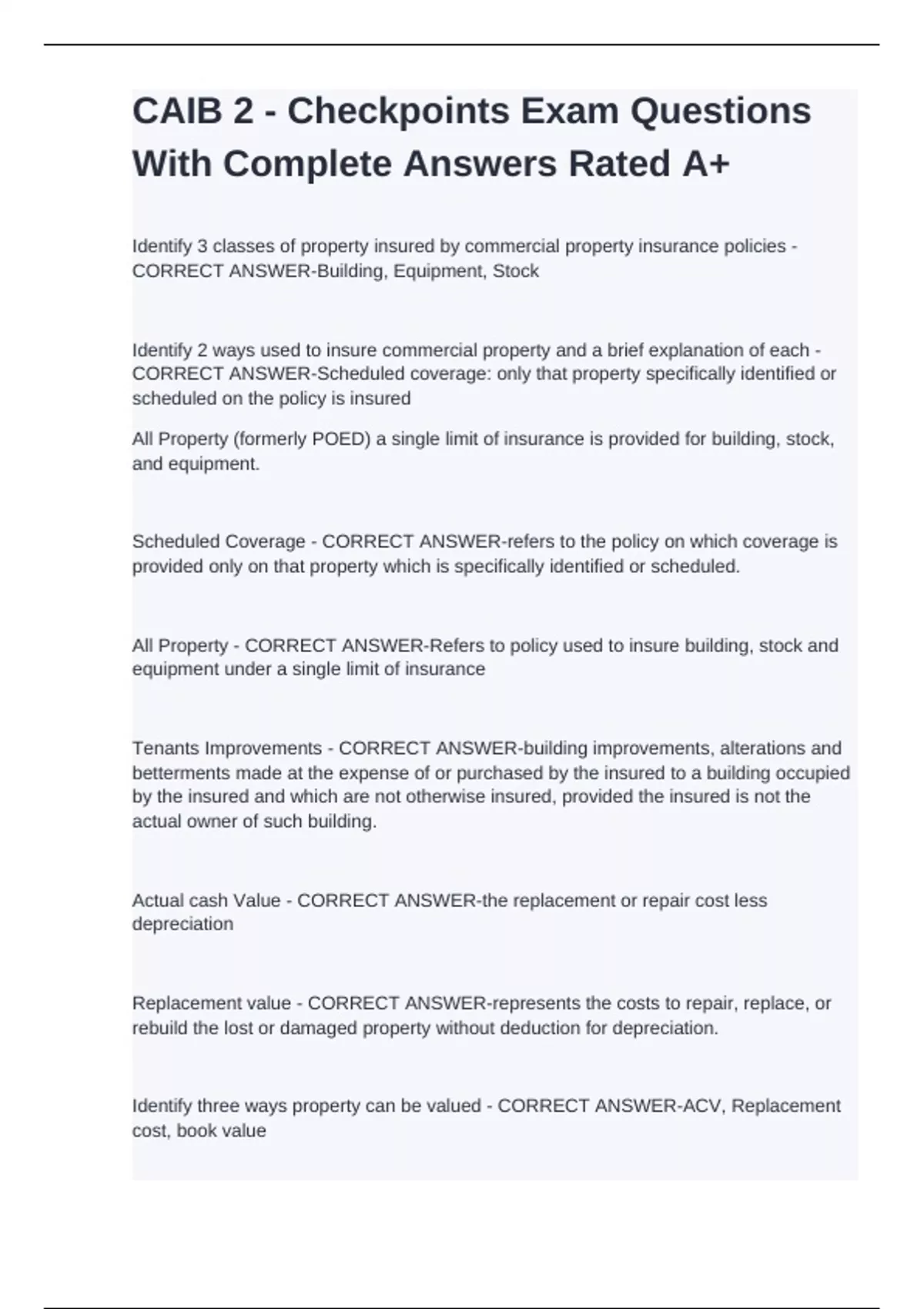CORRECT ANSWER-Scheduled coverage: only that property specifically identified or