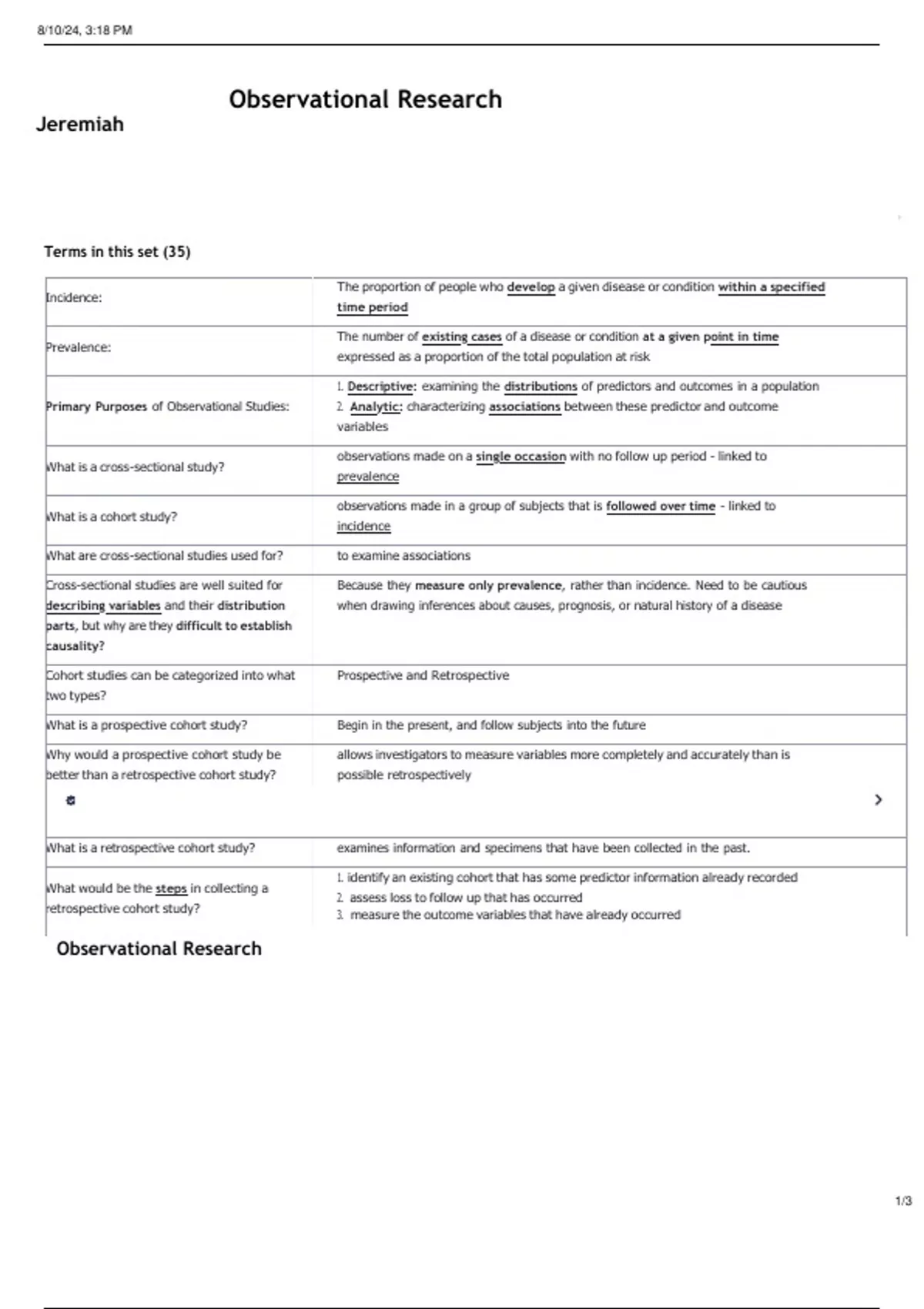 Primary Purposes of Observational Studies: 2. Analytic: characterizing associations between these predictor and outcome