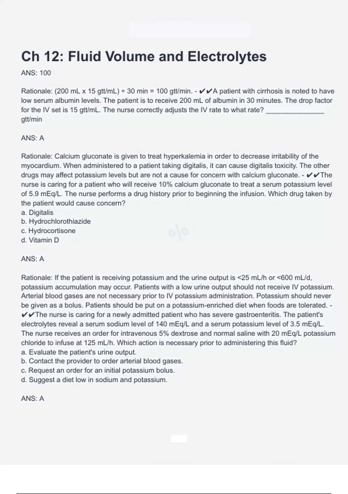 Ch 12 Fluid Volume and Electrolytes Questions &Exam (elaborations) answers 100% satisfaction guarantee
