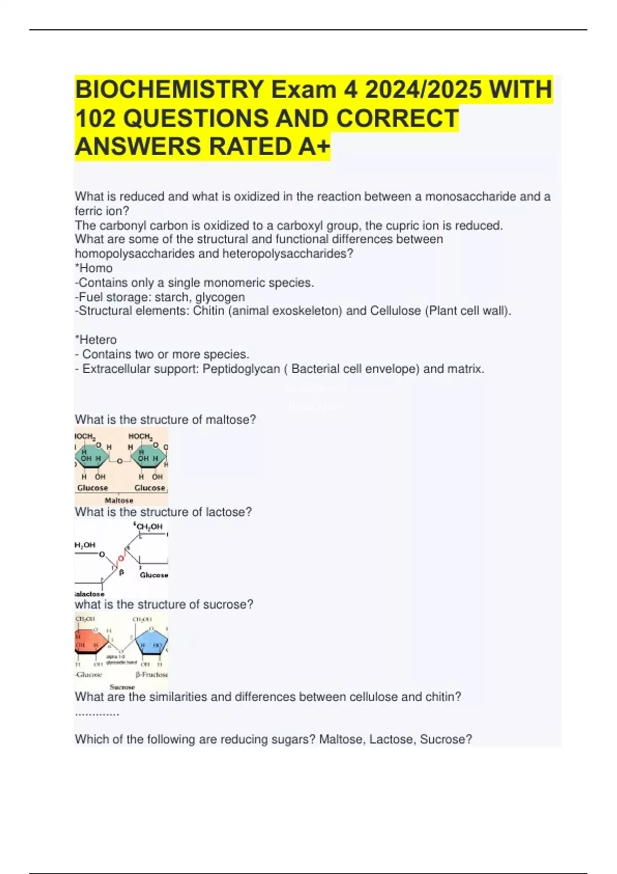 BIOCHEMISTRY Exam 4 2024/2025 WITH