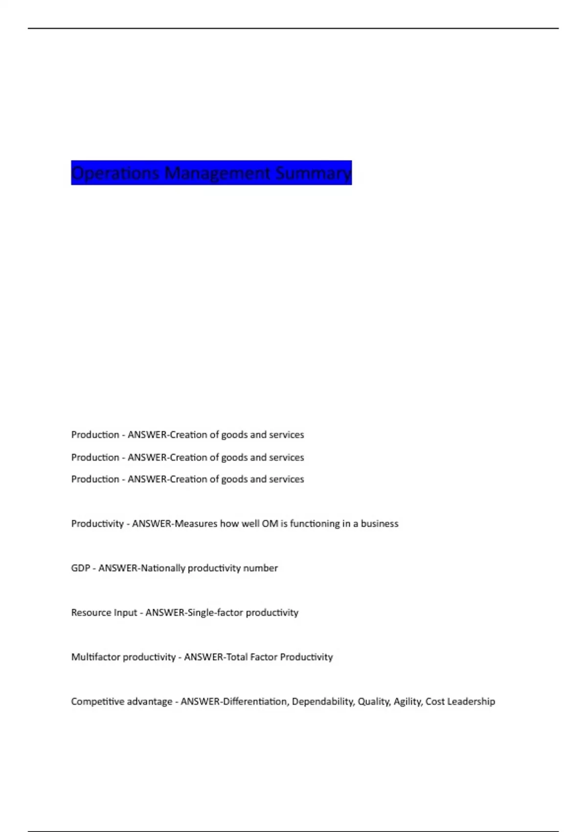 Competitive advantage - ANSWER-Differentiation, Dependability, Quality, Agility, Cost Leadership