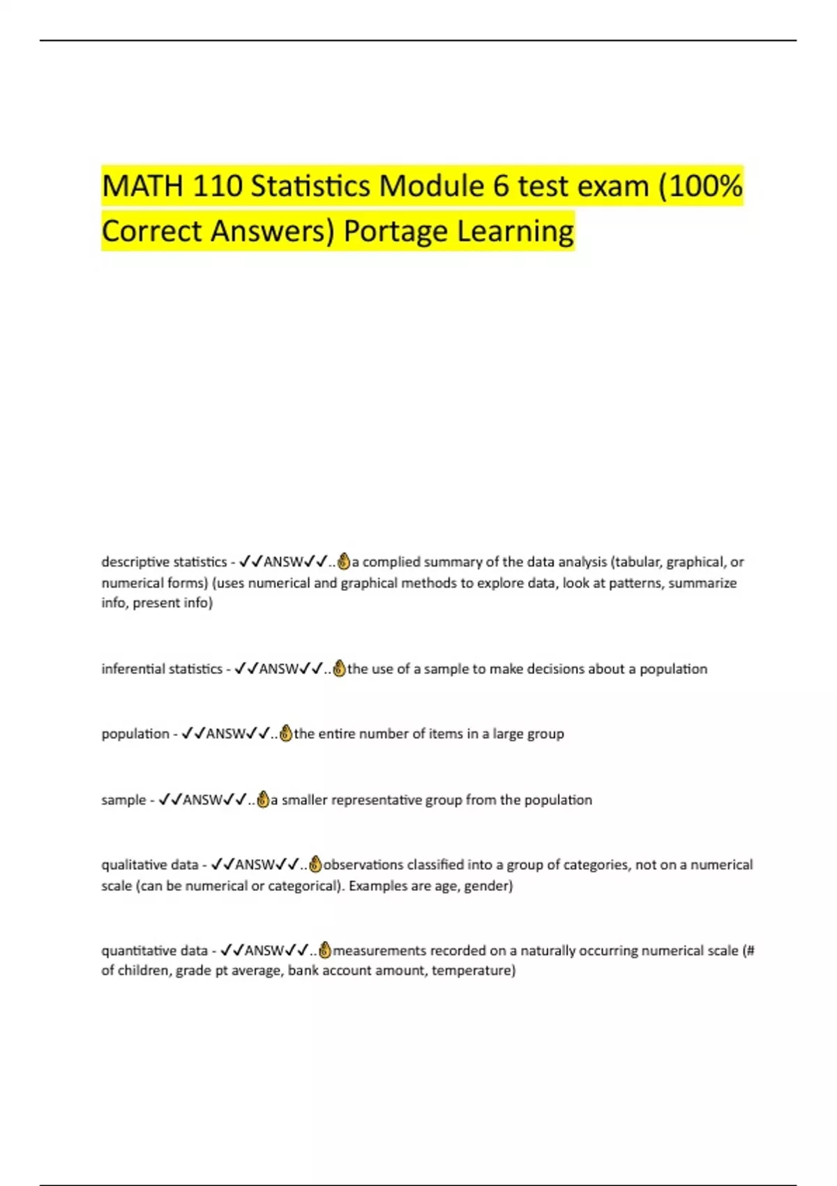 Correct Answers) Portage Learning