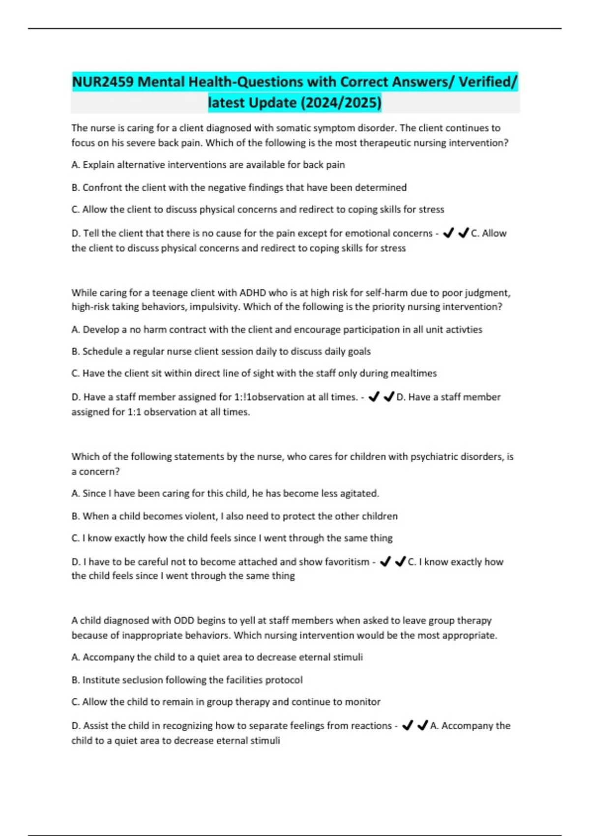 D. Tell the client that there is no cause for the pain except for emotional concerns - ✔️✔️C. Allow