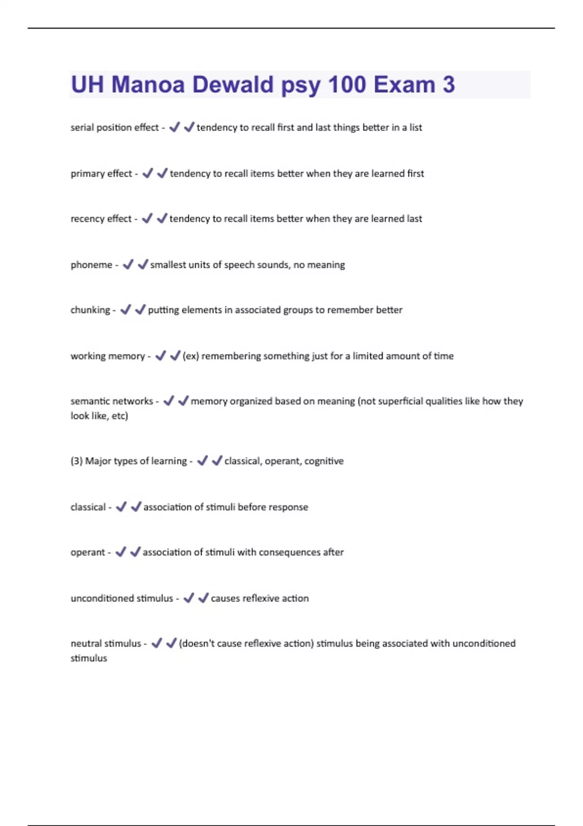 UH Manoa Dewald psy 100 Exam 3