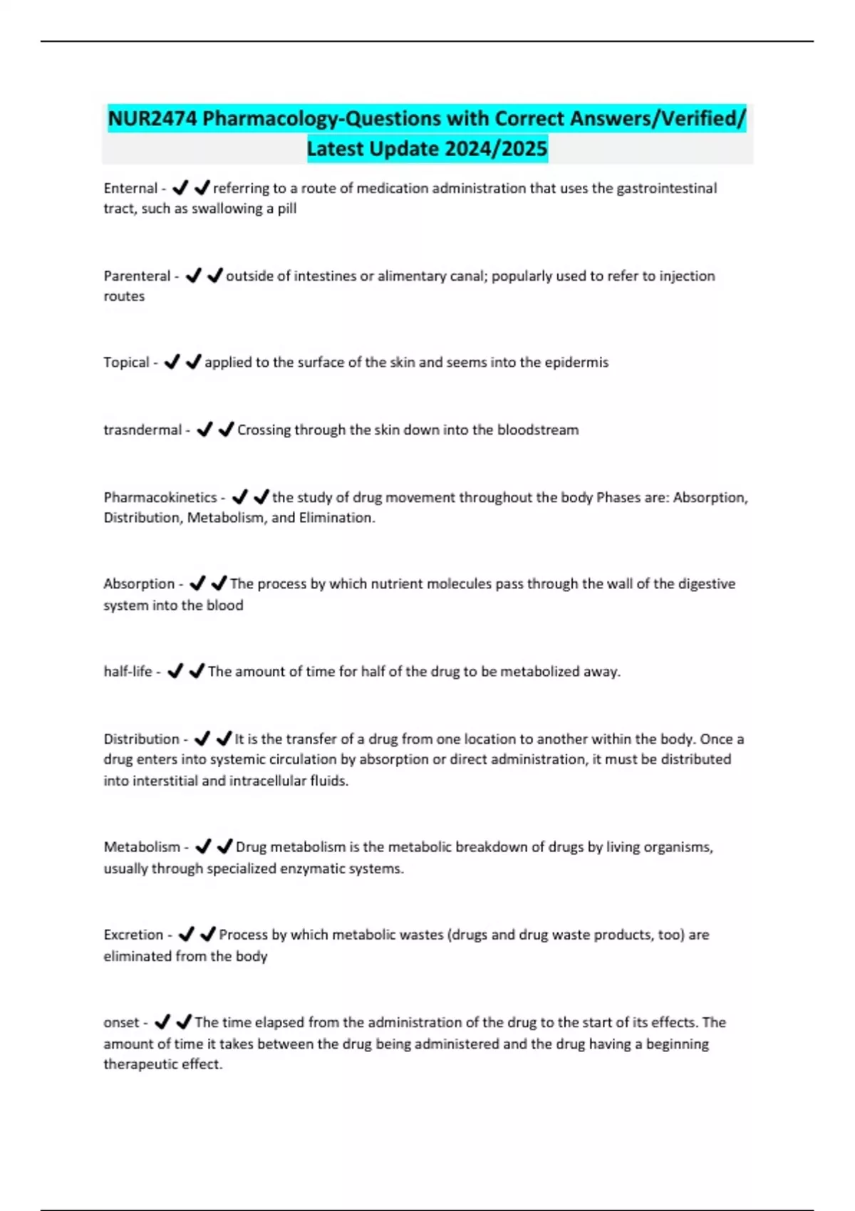 NUR2474 Pharmacology-Questions with Correct Answers/Verified/ Latest Update 2024/2025