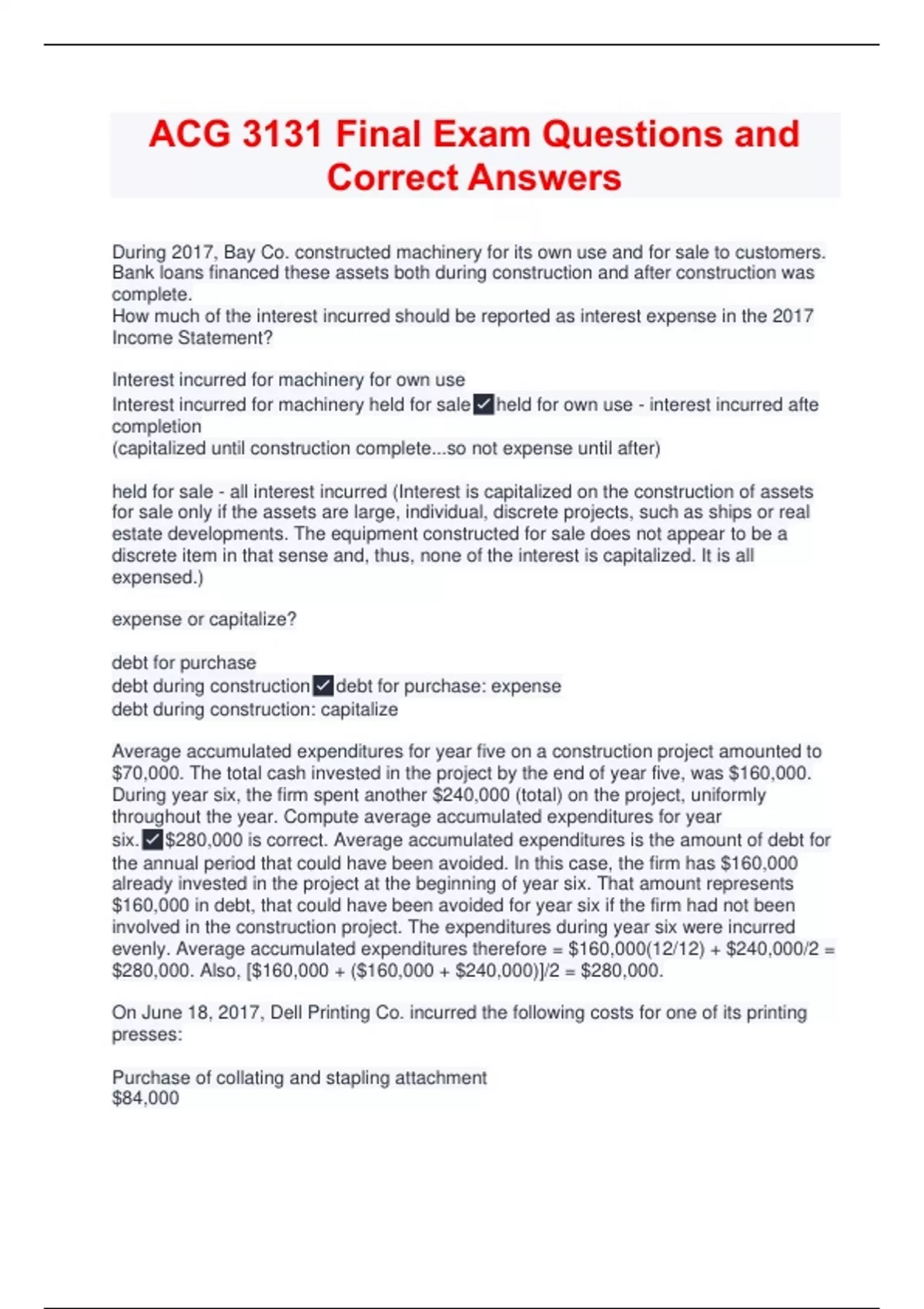 six.✅$280,000 is correct. Average accumulated expenditures is the amount of debt for