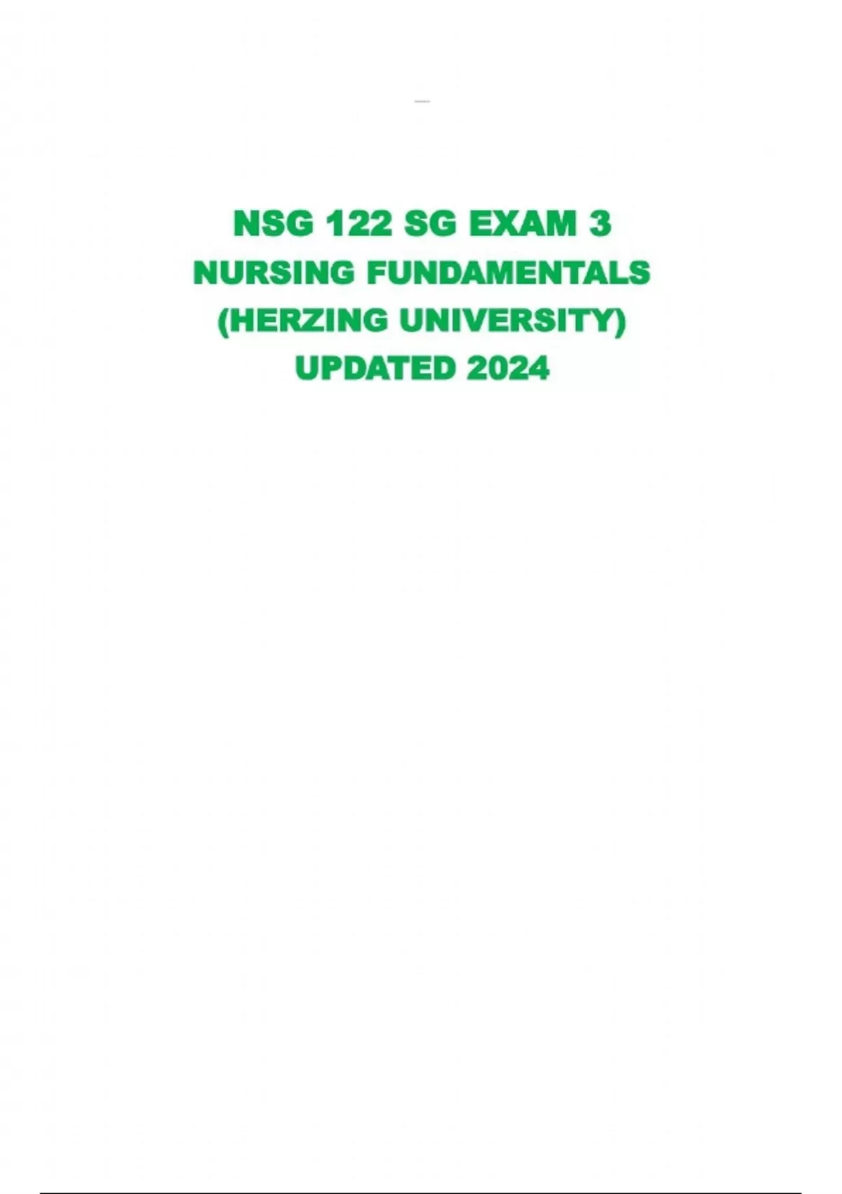 NSG 122 SG EXAM 3 NURSING FUNDAMENTALS (HERZING UNIVERSITY) UPDATED 2024