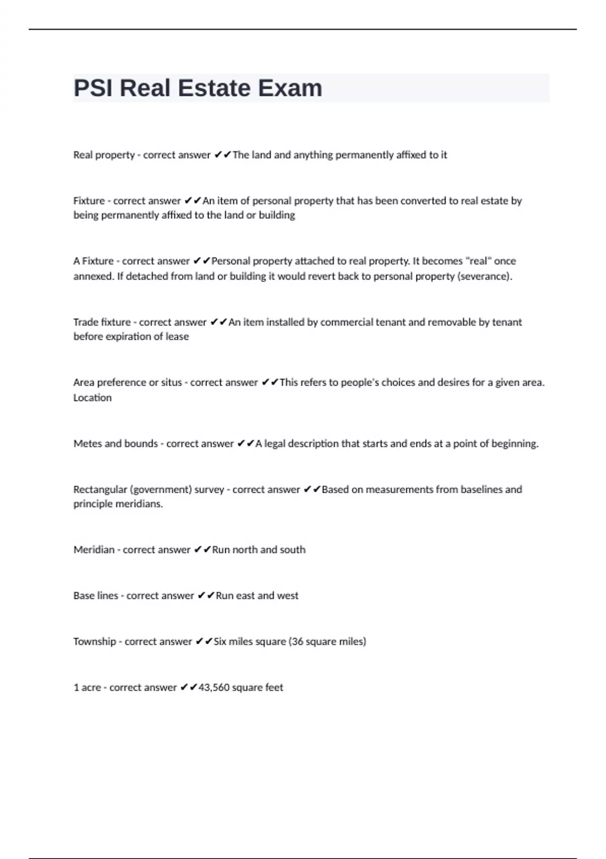 Metes and bounds - correct answer ✔✔A legal description that starts and ends at a point of beginning.
