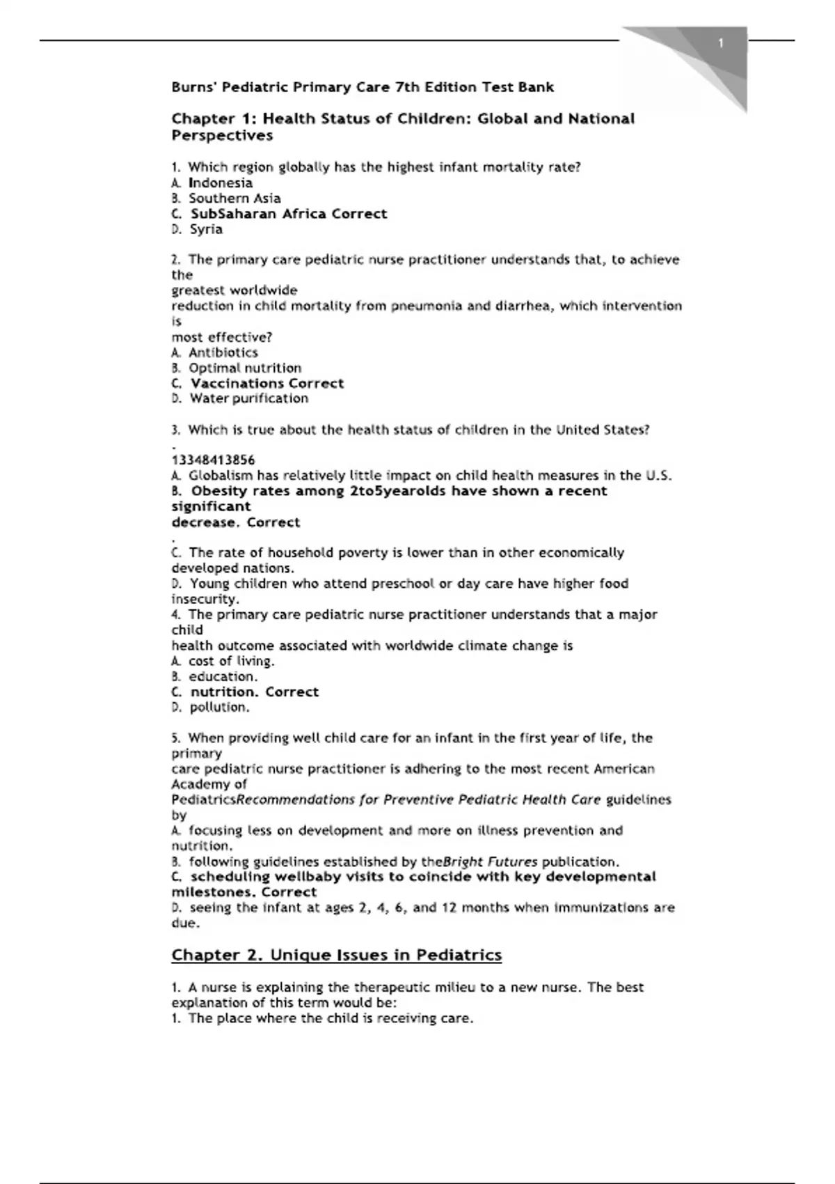 Burns Pediatric Primary Care 7th Edition Test Bank Questions and Answers 1-46 complete chapters Latest