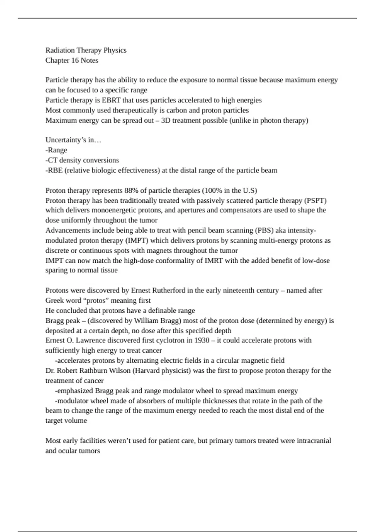 Washington and Leaver Chapter 16 Radiation Therapy Notes