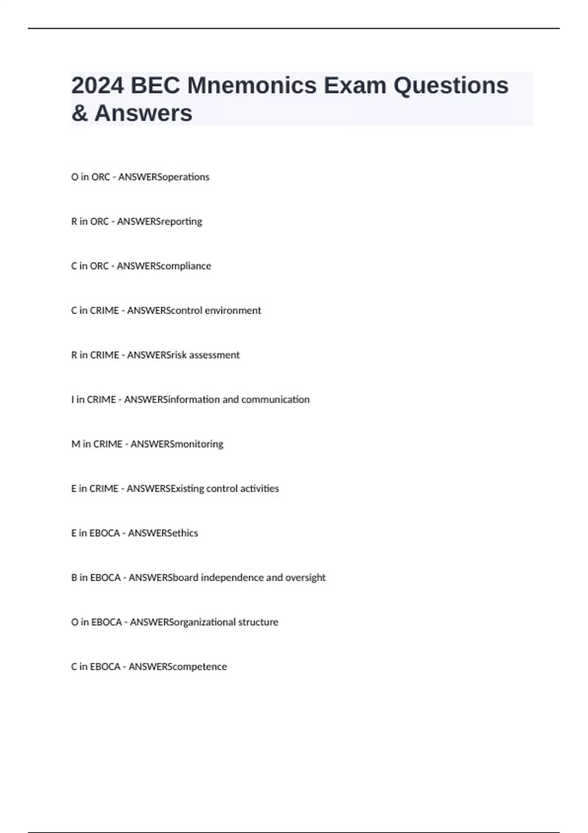 What is the ORC mnemonic for - ANSWERSthe objectives of internal control