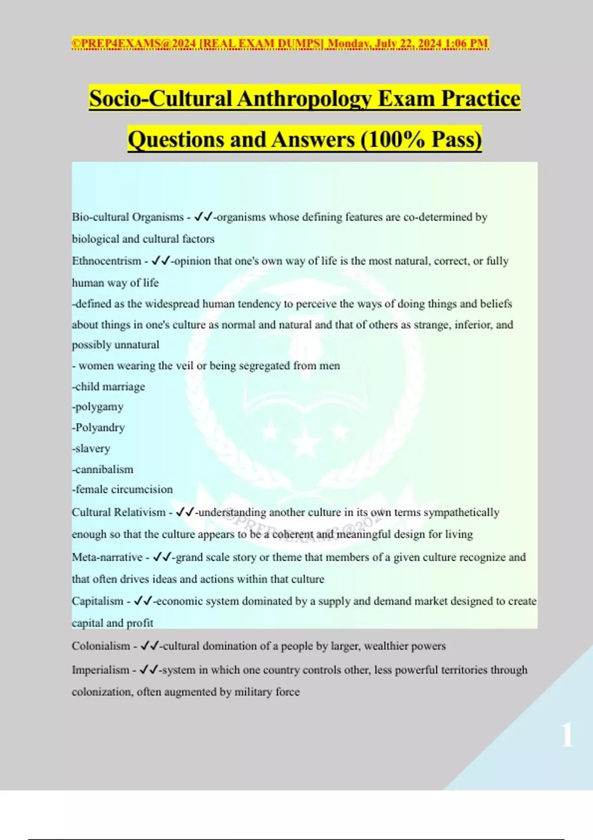 Socio-Cultural Anthropology Exam Practice