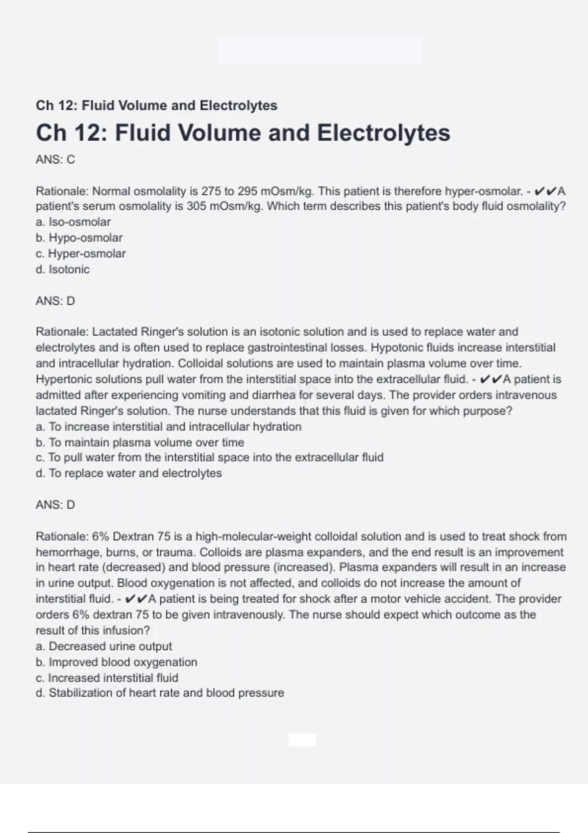 interstitial fluid. - ✔✔A patient is being treated for shock after a motor vehicle accident. The provider
