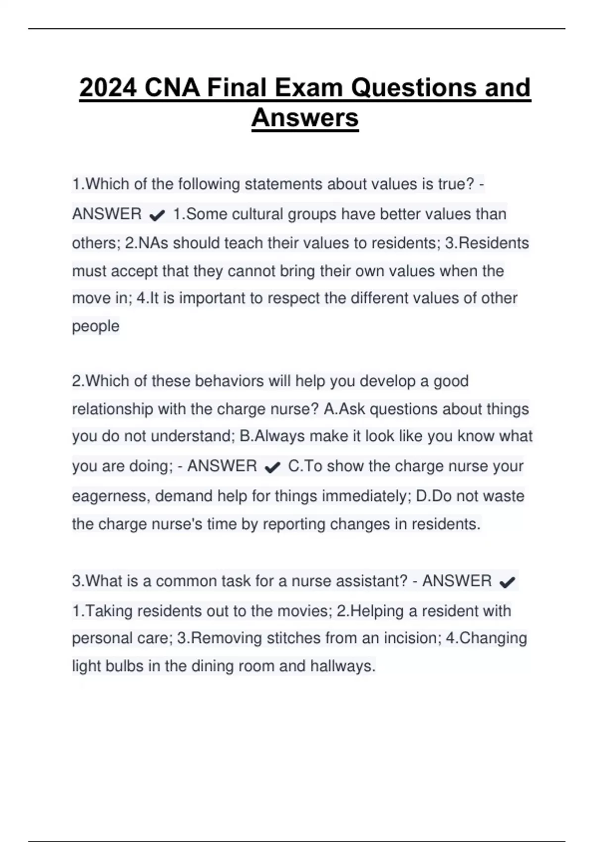 3.What is a common task for a nurse assistant? - ANSWER ✔️