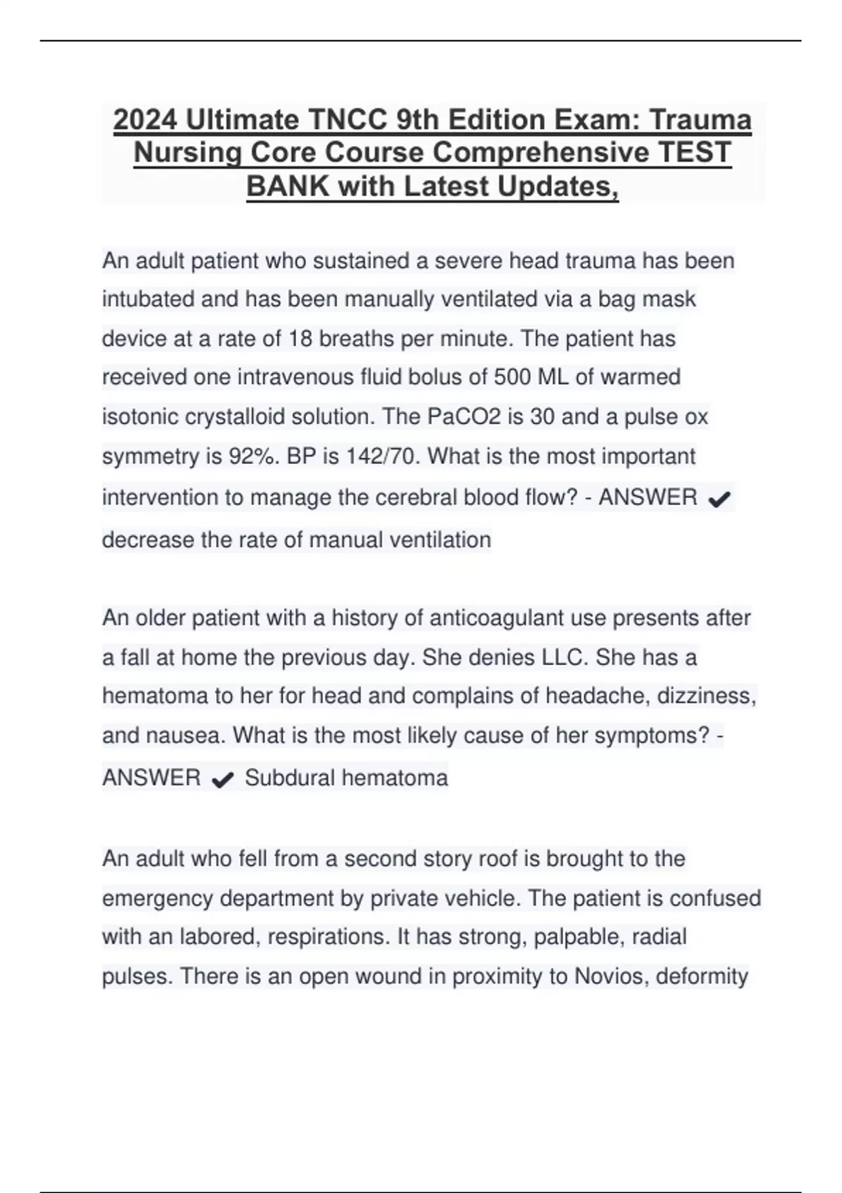 2024 Ultimate TNCC 9th Edition Exam Trauma Nursing Core Course Comprehensive TEST BANK with Latest Updates, 2024 Ultimate TNCC 9th Edition Exam Trauma Nursing Core Course Comprehensive TEST BANK with Latest Updates,2024 Ultimate TNCC 9th Edition Exam Trauma Nursing Core Course Comprehensive TEST BANK with Latest Updates,2024 Ultimate TNCC 9th Edition Exam Trauma Nursing Core Course Comprehensive TEST BANK with Latest Updates,2024 Ultimate TNCC 9th Edition Exam Trauma Nursing Core Course Comprehensive TEST BANK with Latest Updates,2024 Ultimate TNCC 9th Edition Exam Trauma Nursing Core Course Comprehensive TEST BANK with Latest Updates,