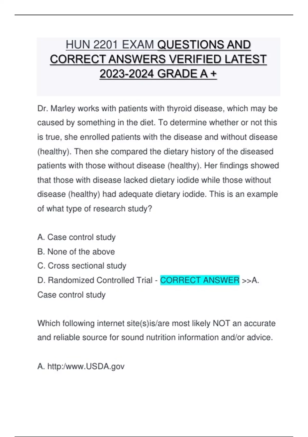 HUN 2201 EXAM QUESTIONS AND CORRECT ANSWERS VERIFIED LATEST GRADE A + HUN 2201 EXAM QUESTIONS AND CORRECT ANSWERS VERIFIED LATEST GRADE A +HUN 2201 EXAM QUESTIONS AND CORRECT ANSWERS VERIFIED LATEST GRADE A +