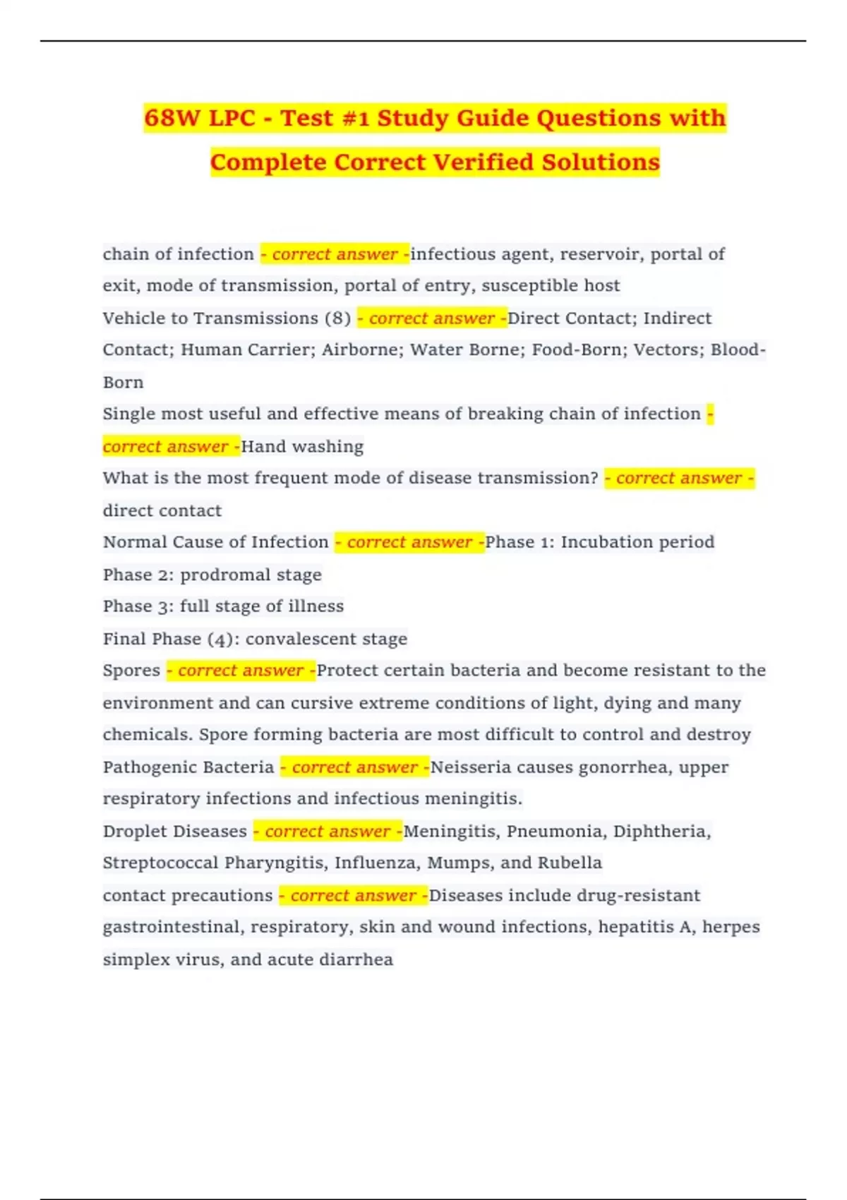 Droplet Diseases - correct answer -Meningitis, Pneumonia, Diphtheria,