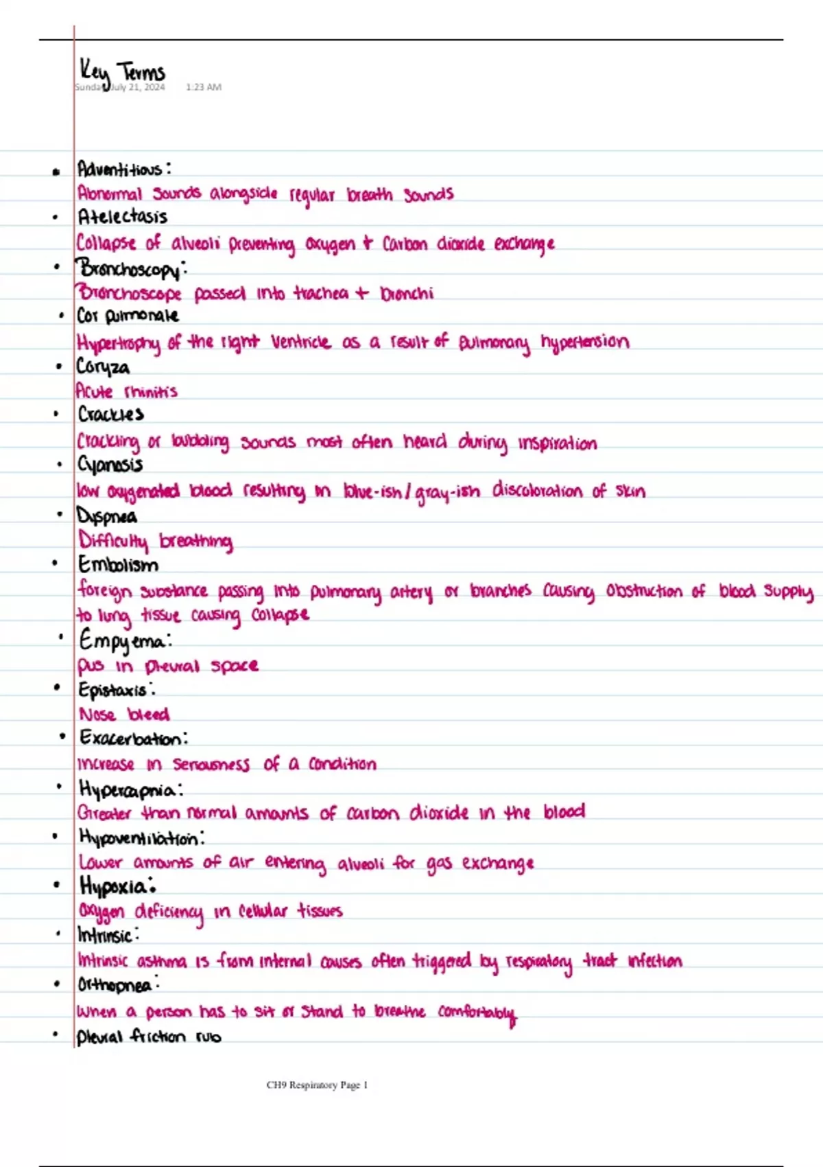 Care of a patient with a respiratory disorder chapter 9 adult health nursing notes and focused study guide for exam