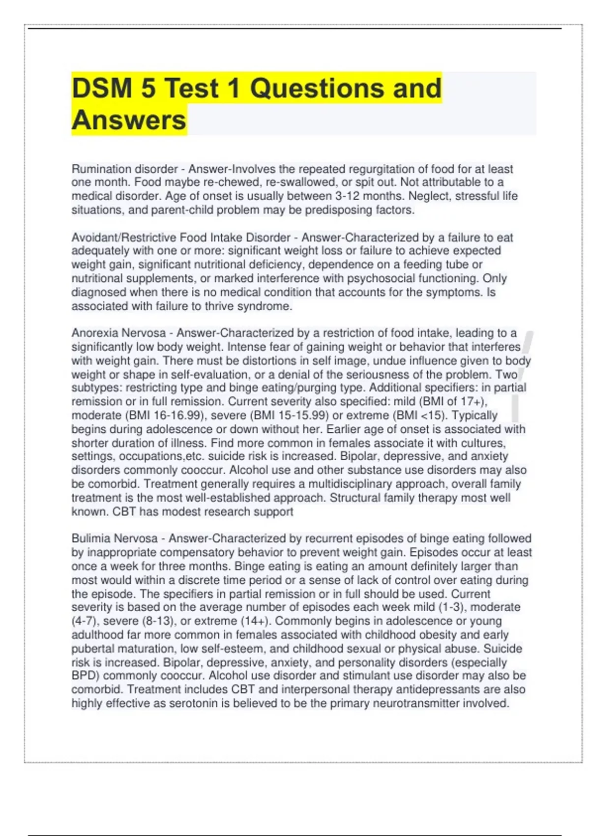 ,Binge eating disorder - Answer-Recurrent episodes of binge eating associated with
