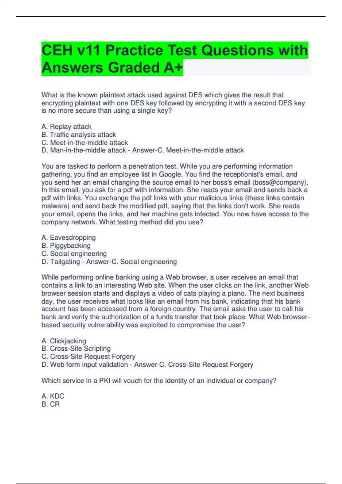 D. Tailgating - Answer-C. Social engineering