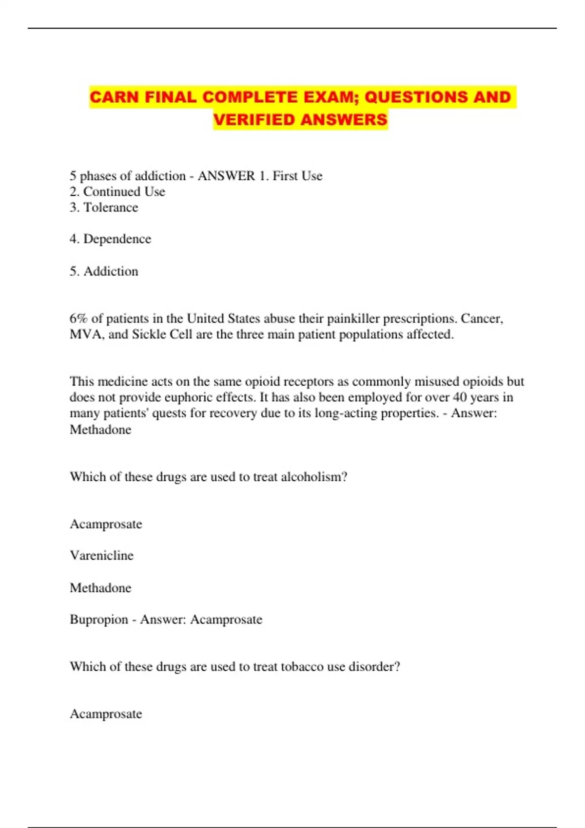 CARN FINAL COMPLETE EXAM; QUESTIONS AND