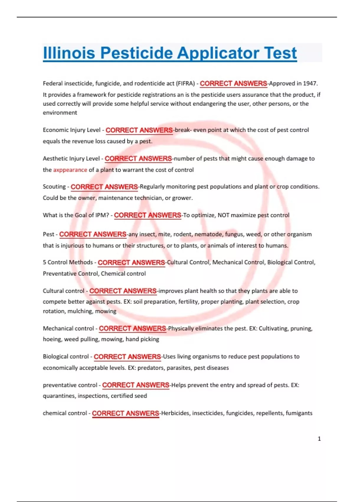 Federal insecticide, fungicide, and rodenticide act (FIFRA) - CORRECT ANSWERS-Approved in 1947.