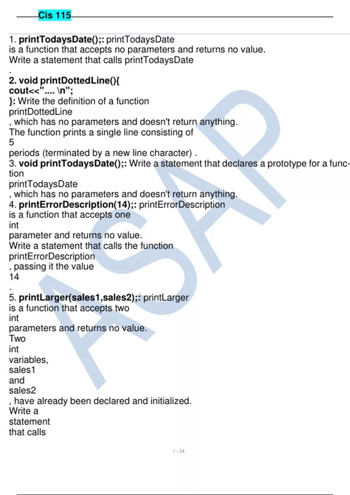 3. void printTodaysDate();: Write a statement that declares a prototype for a func-