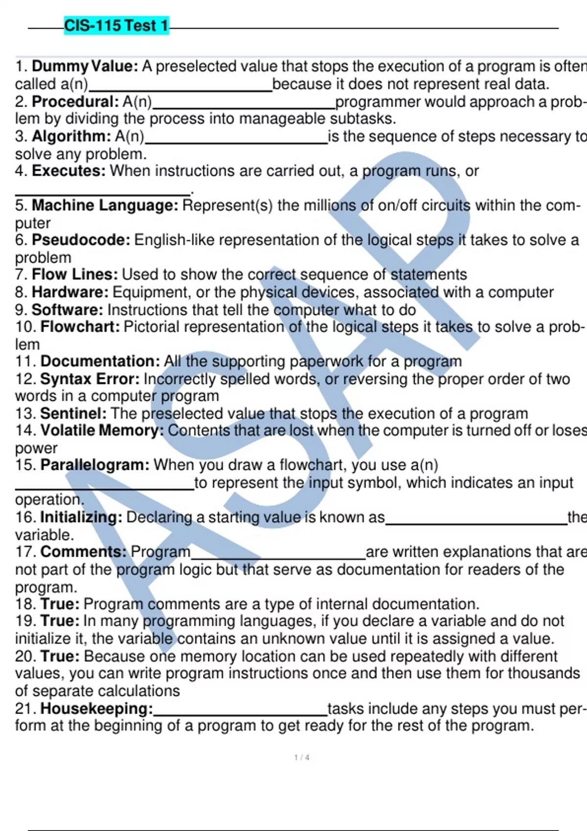 1. Dummy Value: A preselected value that stops the execution of a program is often
