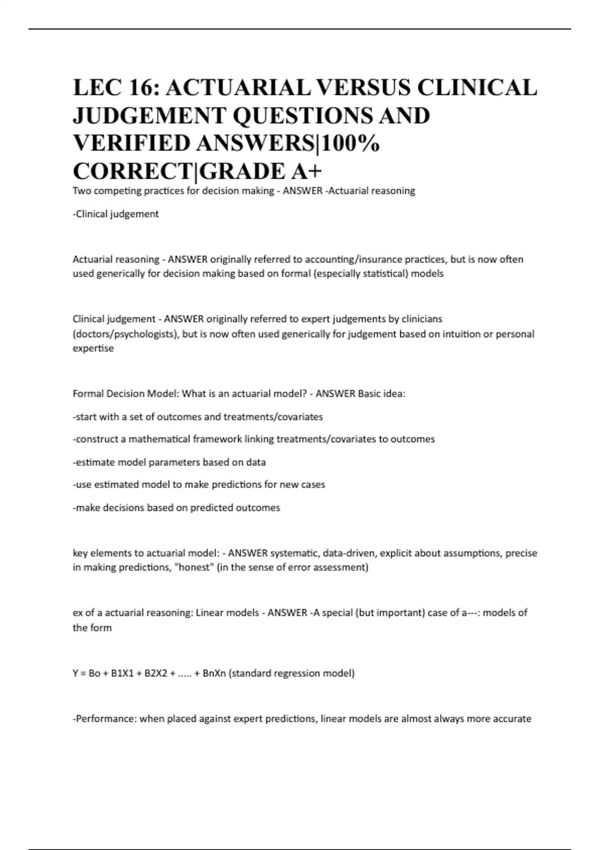 LEC 16: ACTUARIAL VERSUS CLINICAL JUDGEMENT QUESTIONS AND VERIFIED ANSWERS|100% CORRECT|GRADE A+