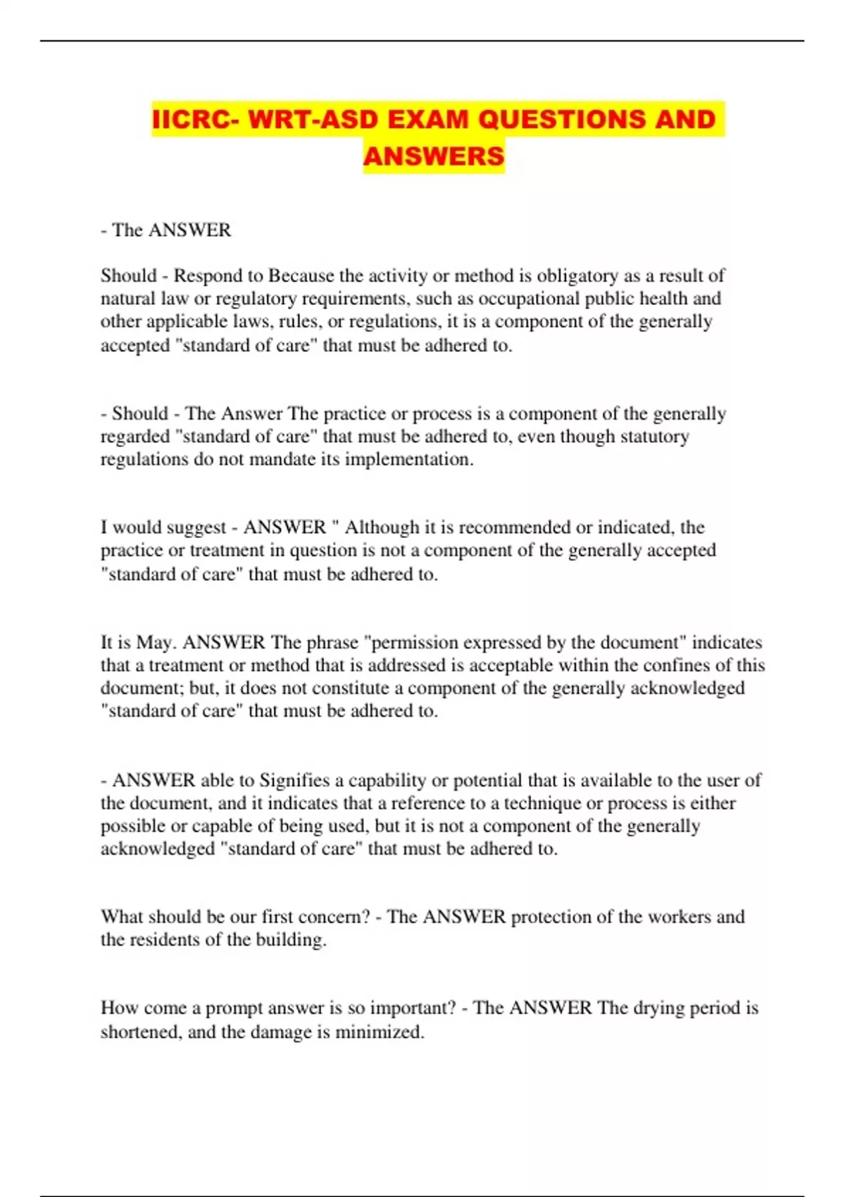 IICRC- WRT-ASD EXAM QUESTIONS AND