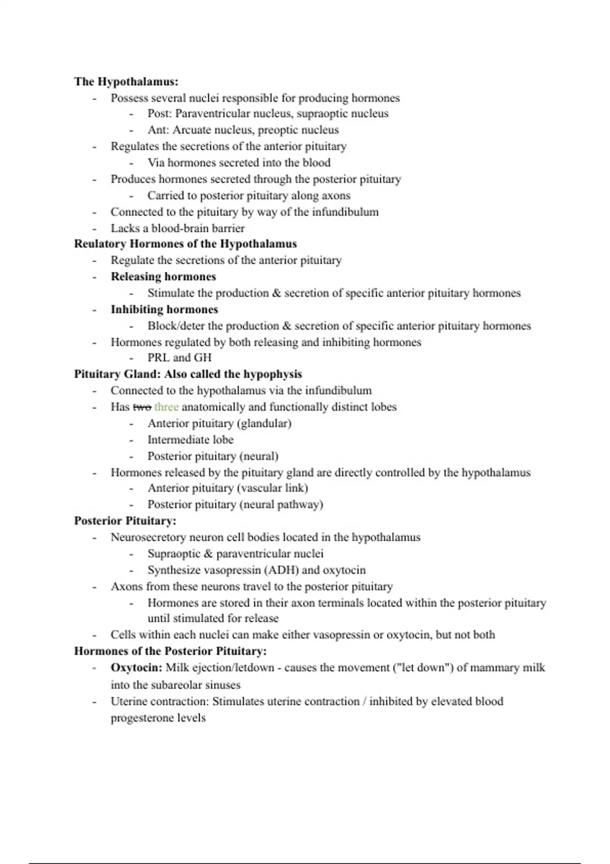 Reulatory Hormones of the Hypothalamus
