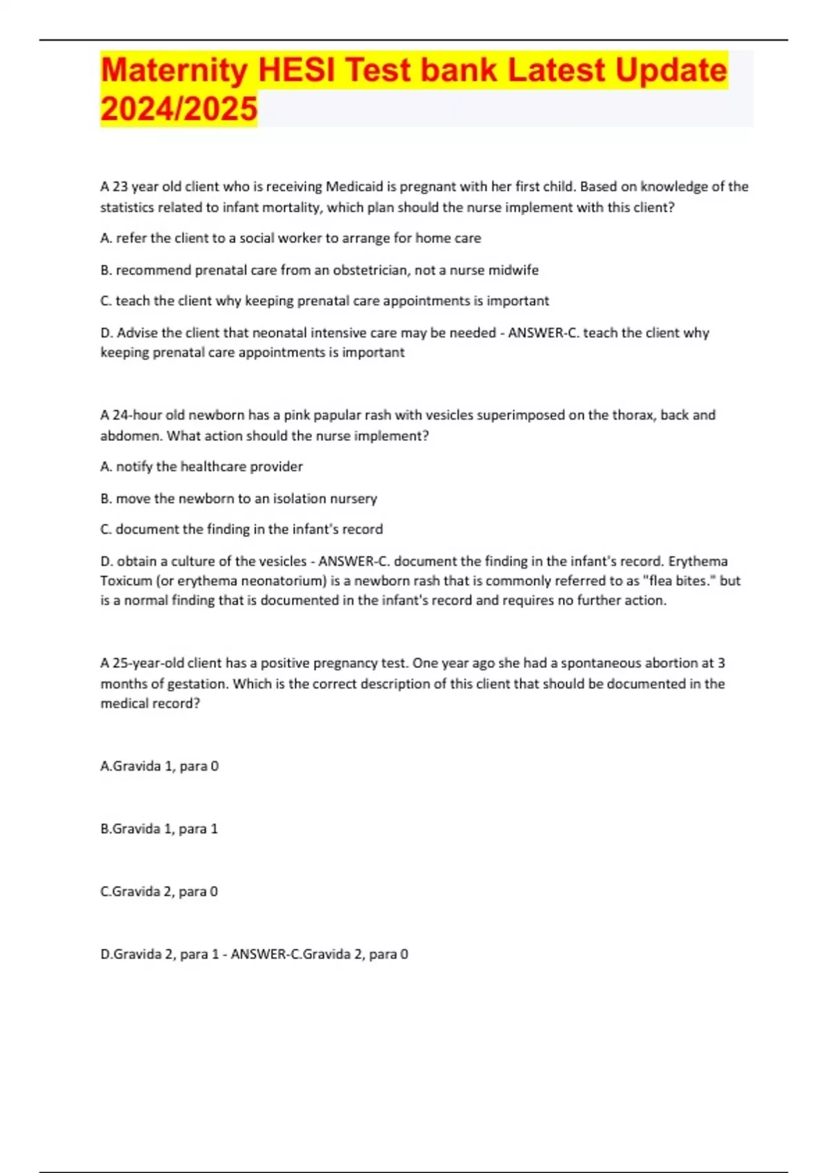 Maternity HESI Test bank Latest Update 2024/2025