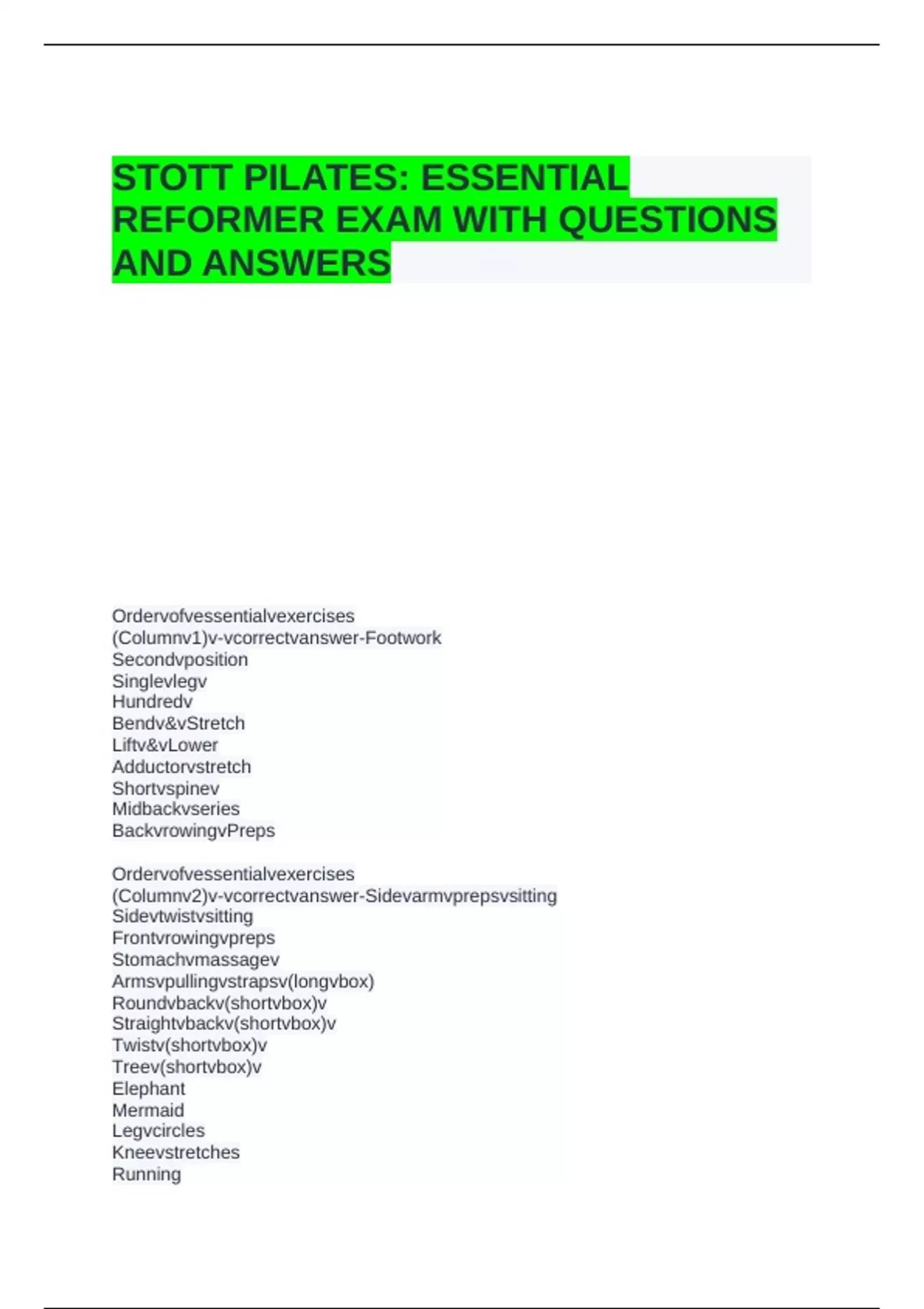 REFORMER EXAM WITH QUESTIONS