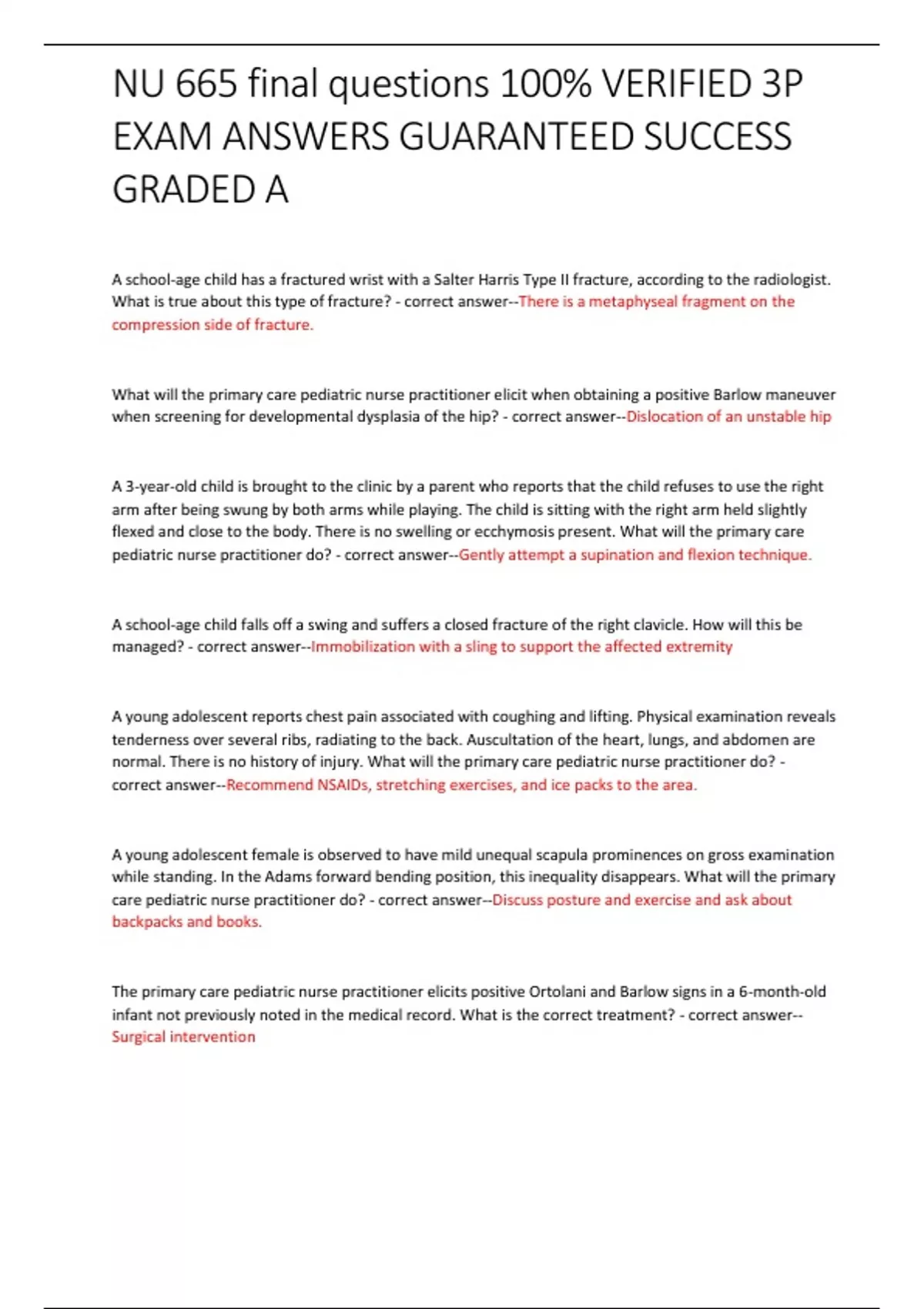 NU 665 final questions 100% VERIFIED 3P EXAM ANSWERS GUARANTEED SUCCESS GRADED A