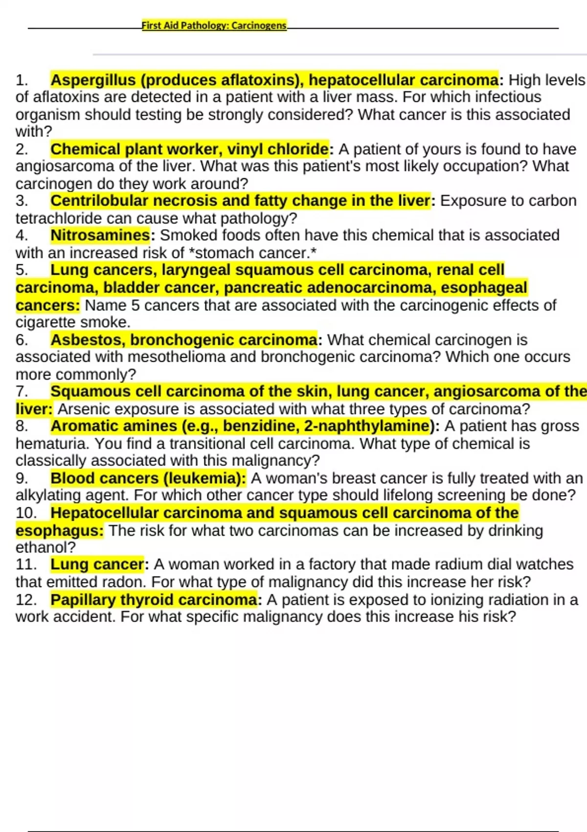 2. Chemical plant worker, vinyl chloride: A patient of yours is found to have