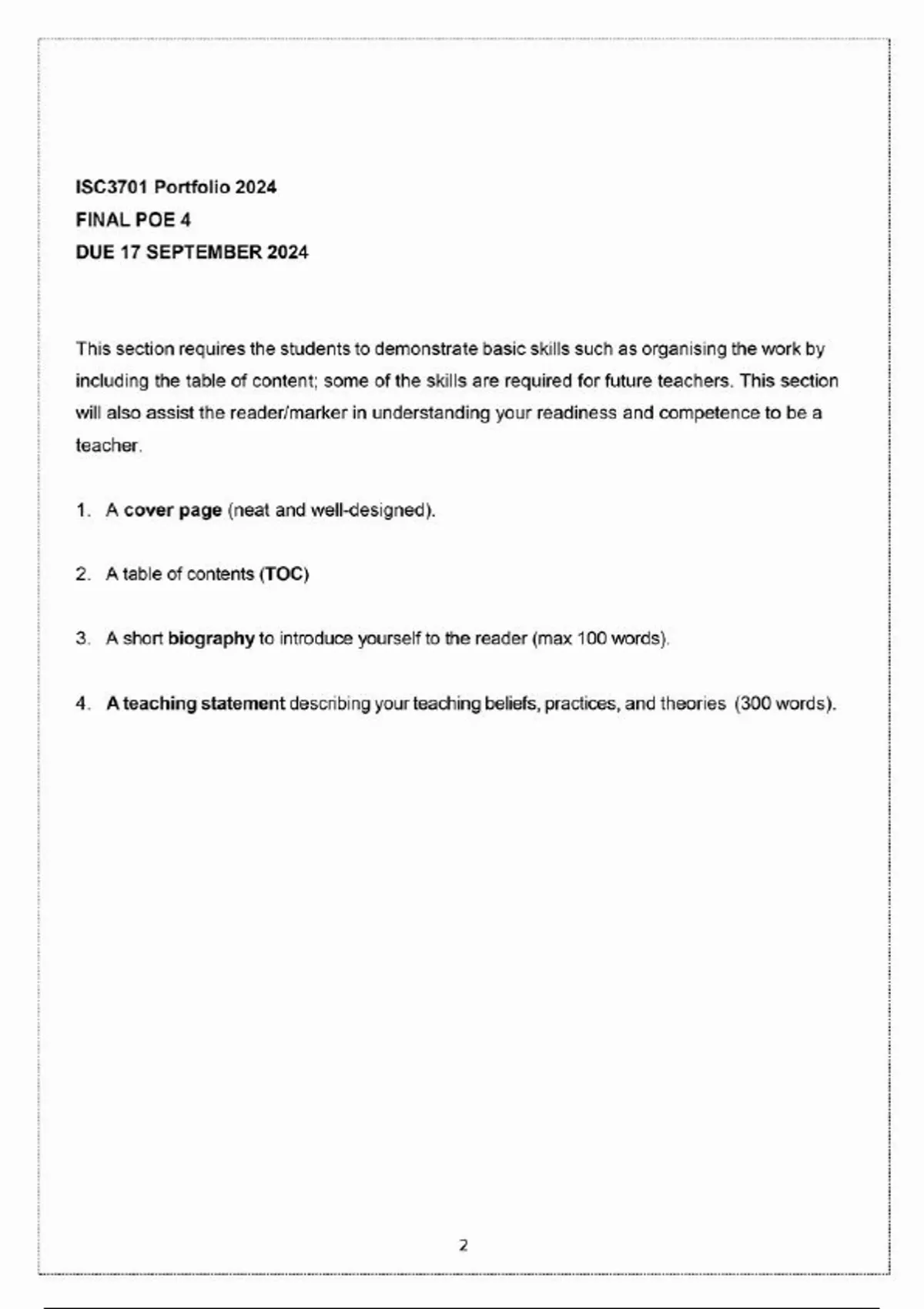 ISC3701 Assignment 4 (Portfolio) Due 17 September 2024