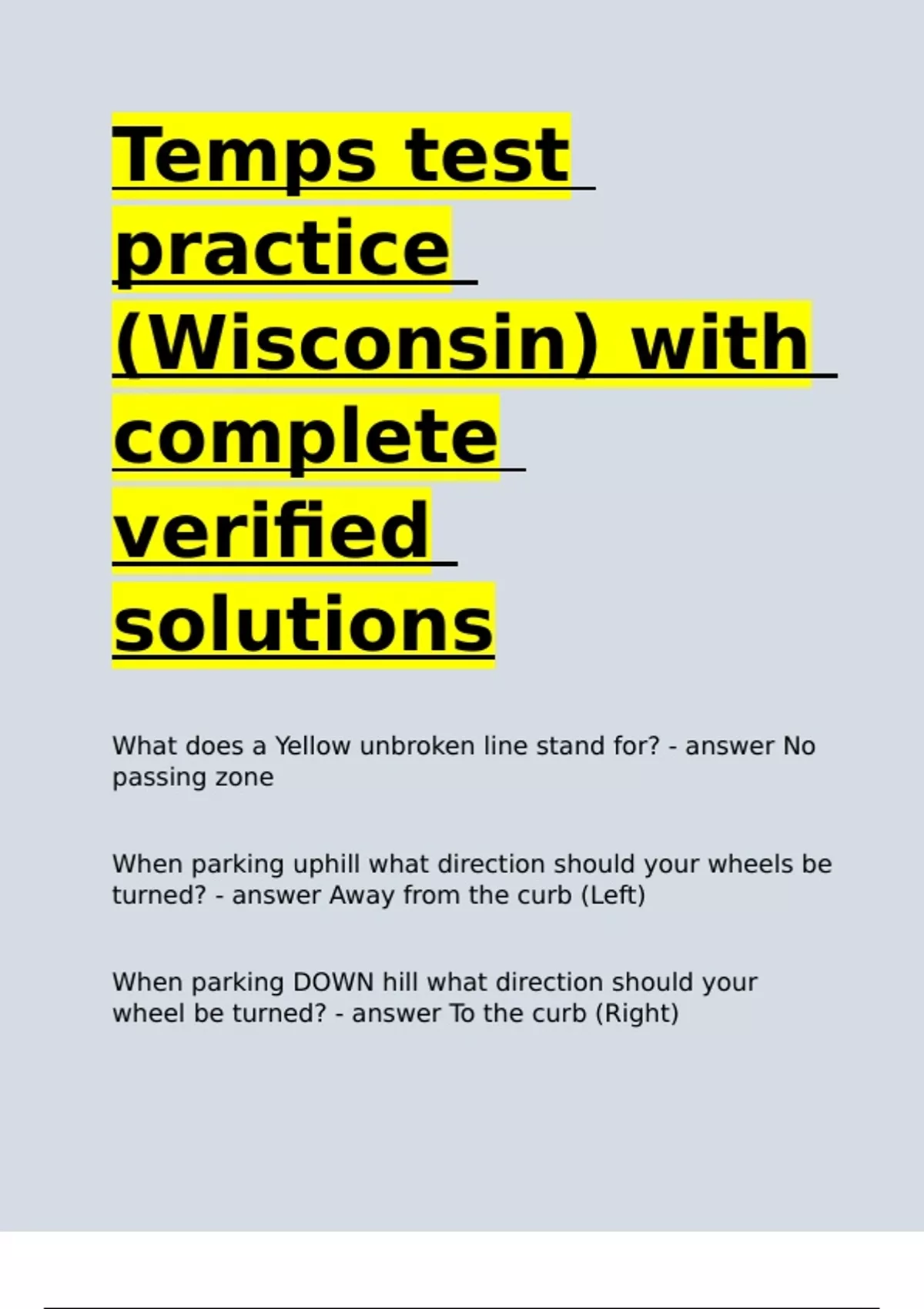 turned? - answer Away from the curb (Left)