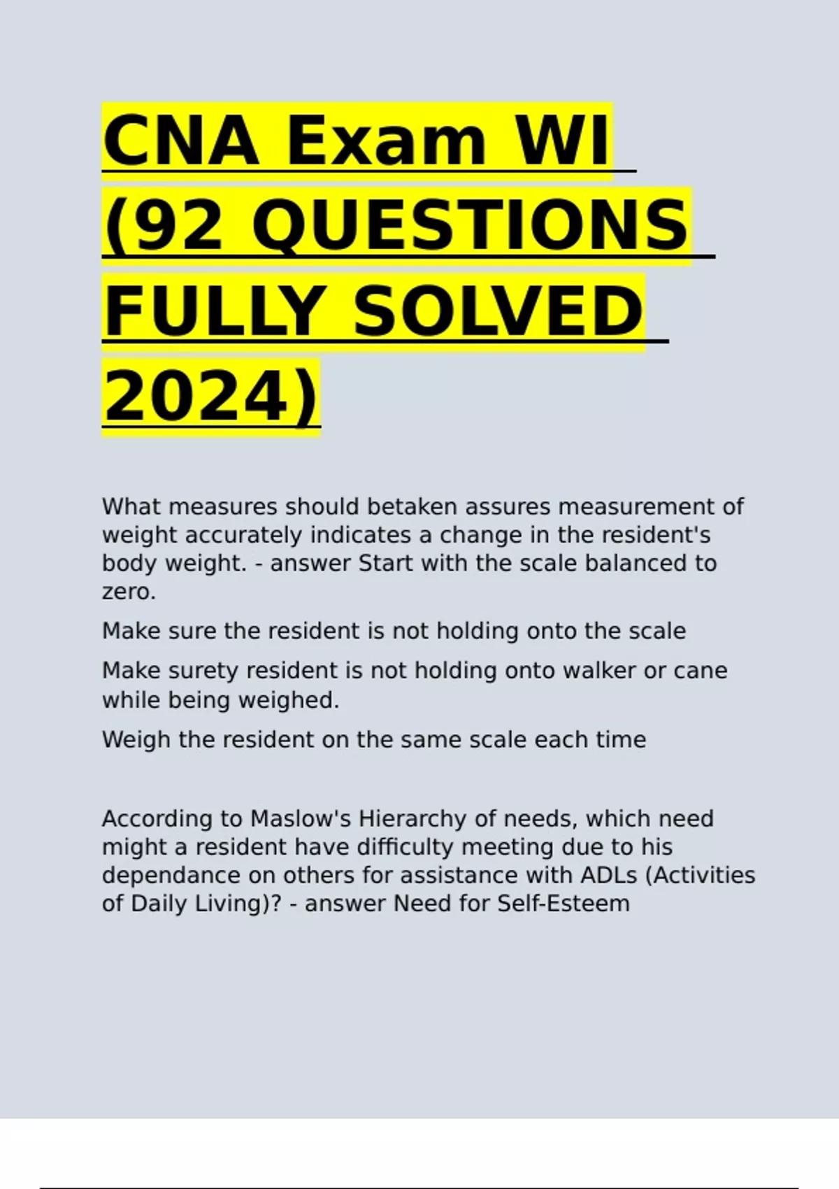 CNA Exam WI (92 QUESTIONS FULLY SOLVED 2024).