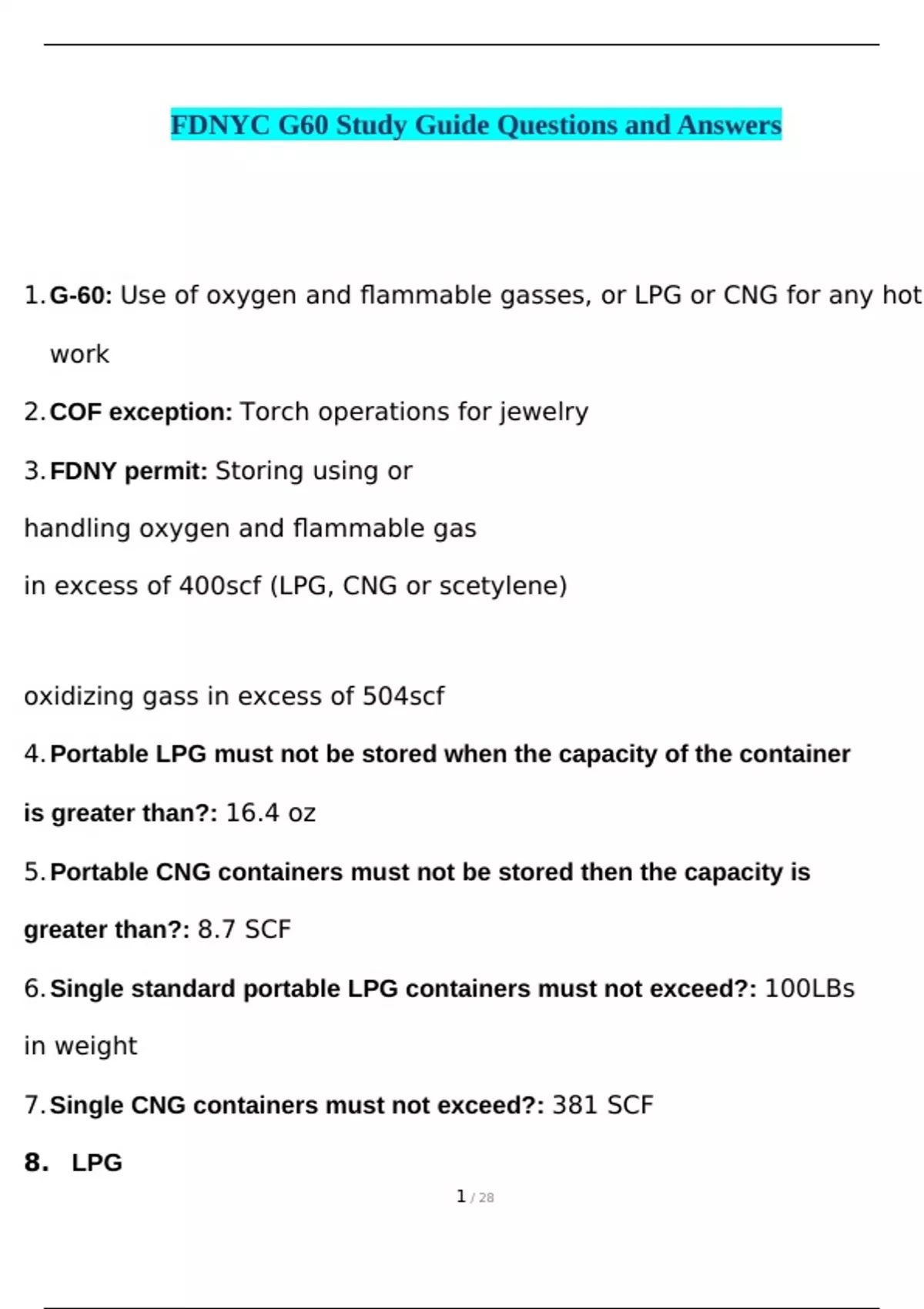 1. G-60: Use of oxygen and flammable gasses, or LPG or CNG for any hot