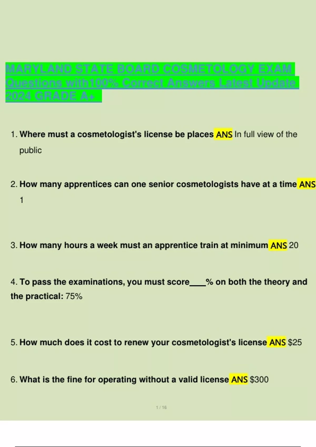 MARYLAND STATE BOARD COSMETOLOGY EXAM