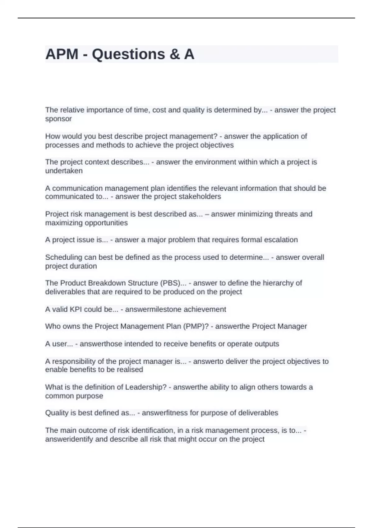 Quality is best defined as... - answerfitness for purpose of deliverables