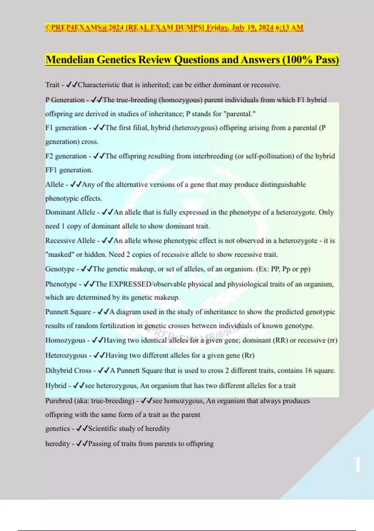 Mendelian Genetics Review Questions and Answers (100% Pass)