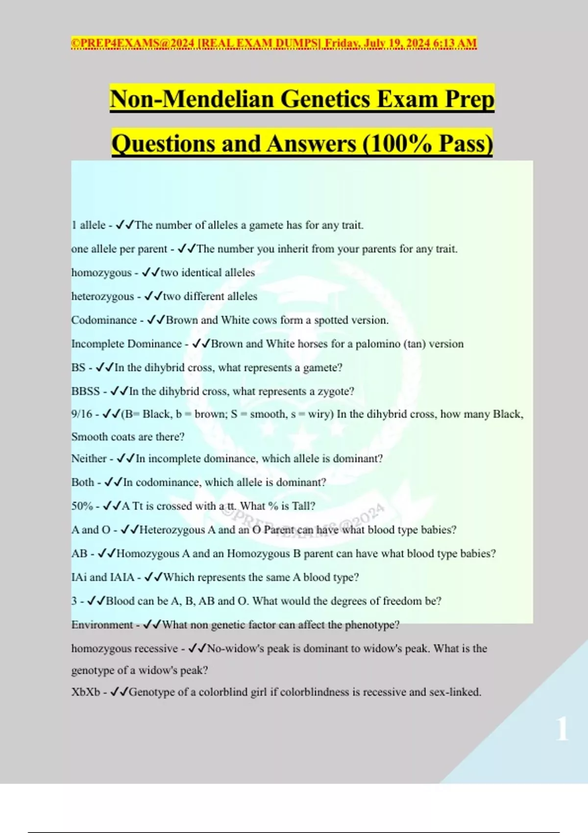 Non-Mendelian Genetics Exam Prep