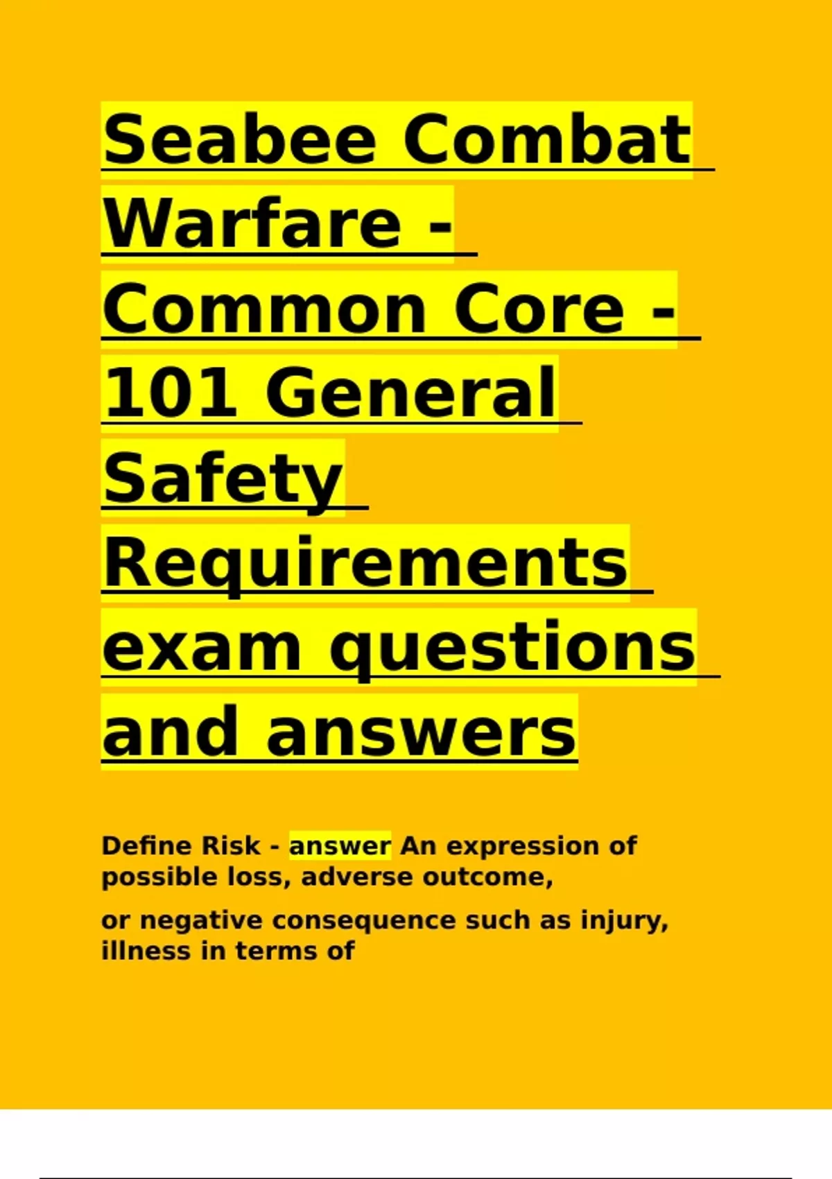 Seabee Combat Warfare - Common Core - 101 General Safety Requirements exam questions and answers