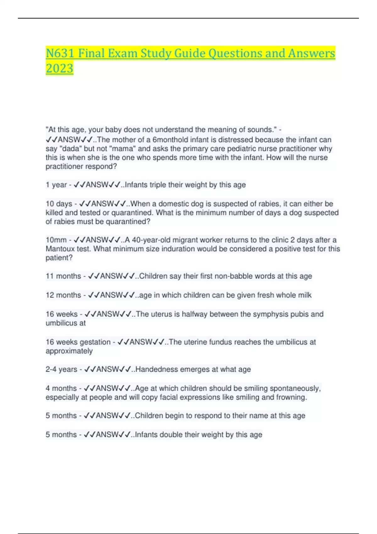 1 year - ✔✔ANSW✔✔..Infants triple their weight by this age