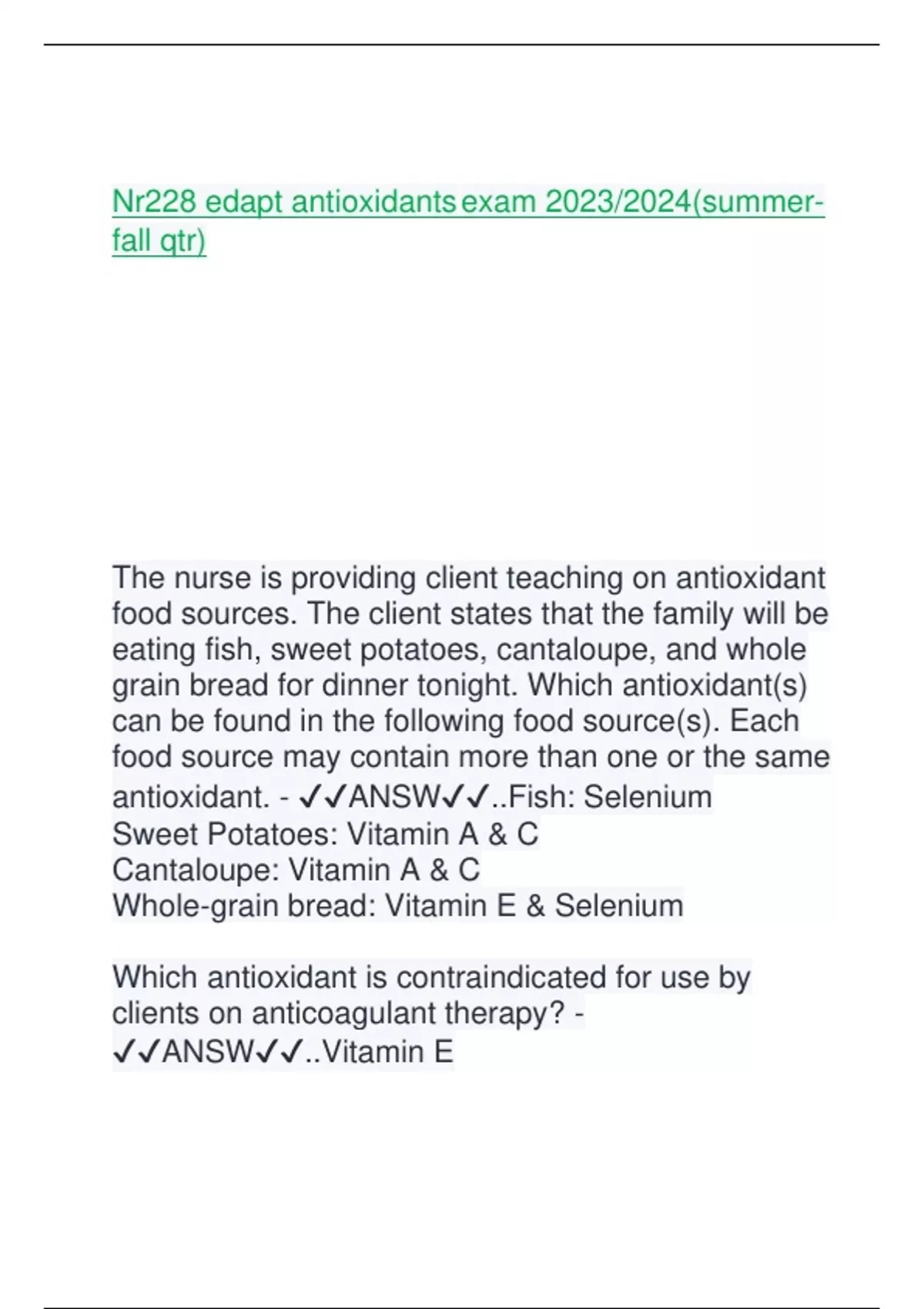 ✔✔ANSW✔✔..Vitamin E