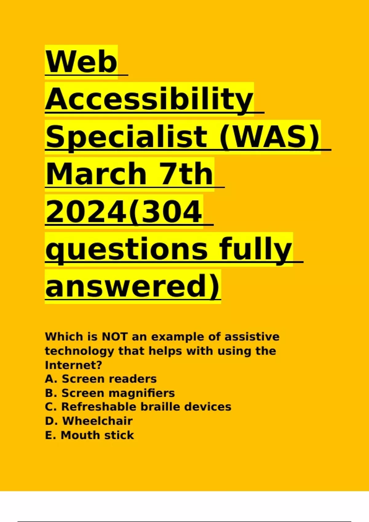 Web Accessibility Specialist (WAS) March 7th 2024(304 questions fully answered).