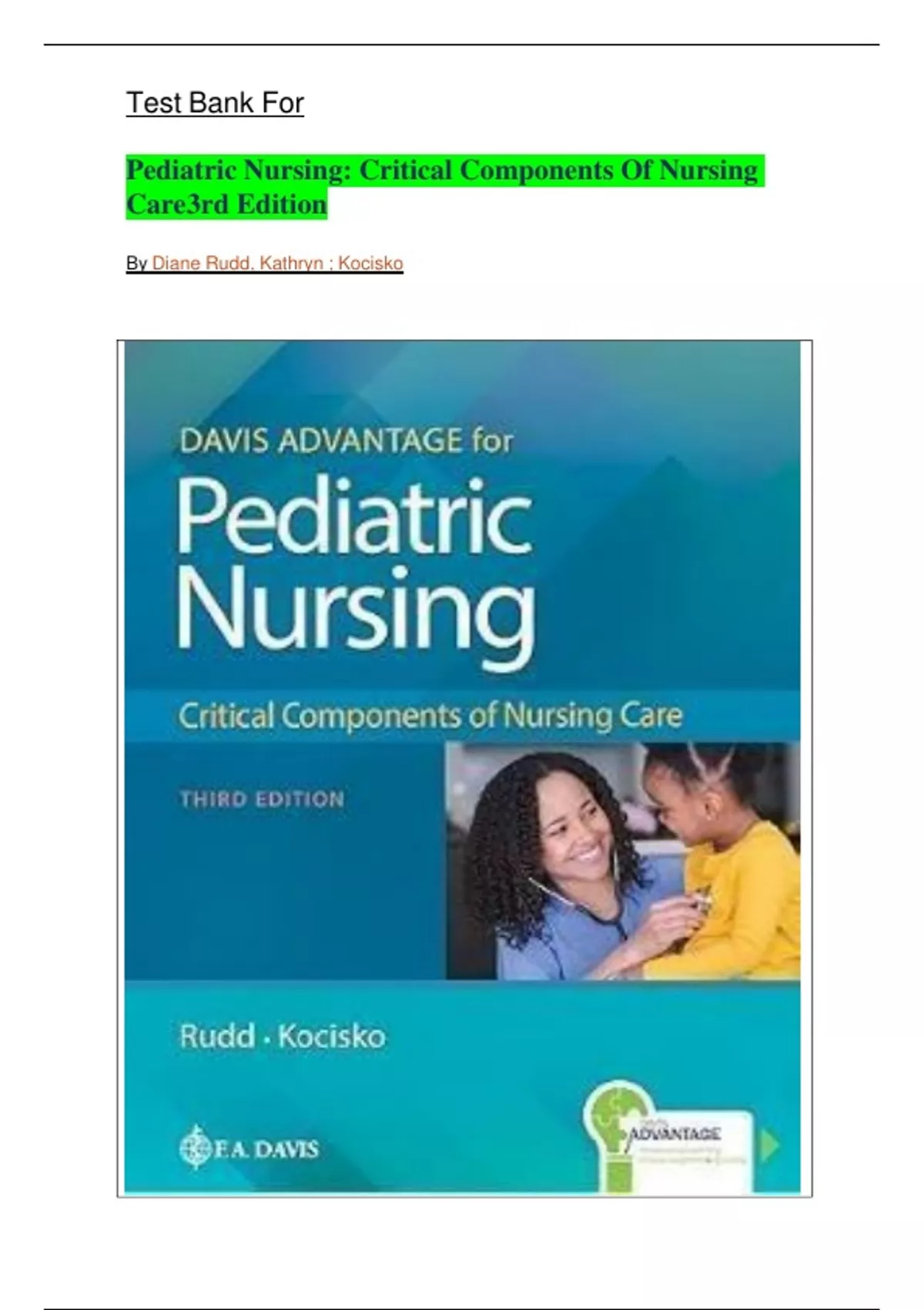 Pediatric Nursing: Critical Components Of Nursing