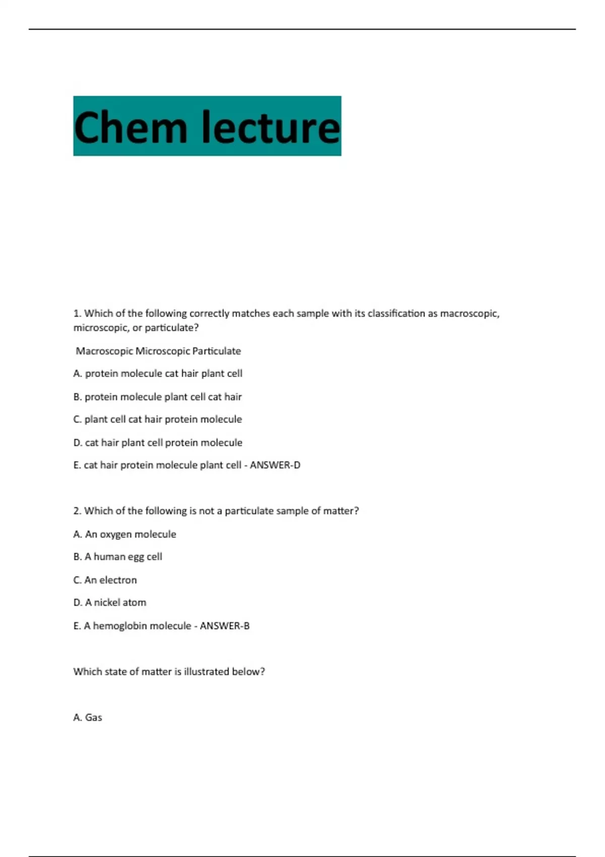 2. Which of the following is not a particulate sample of matter?