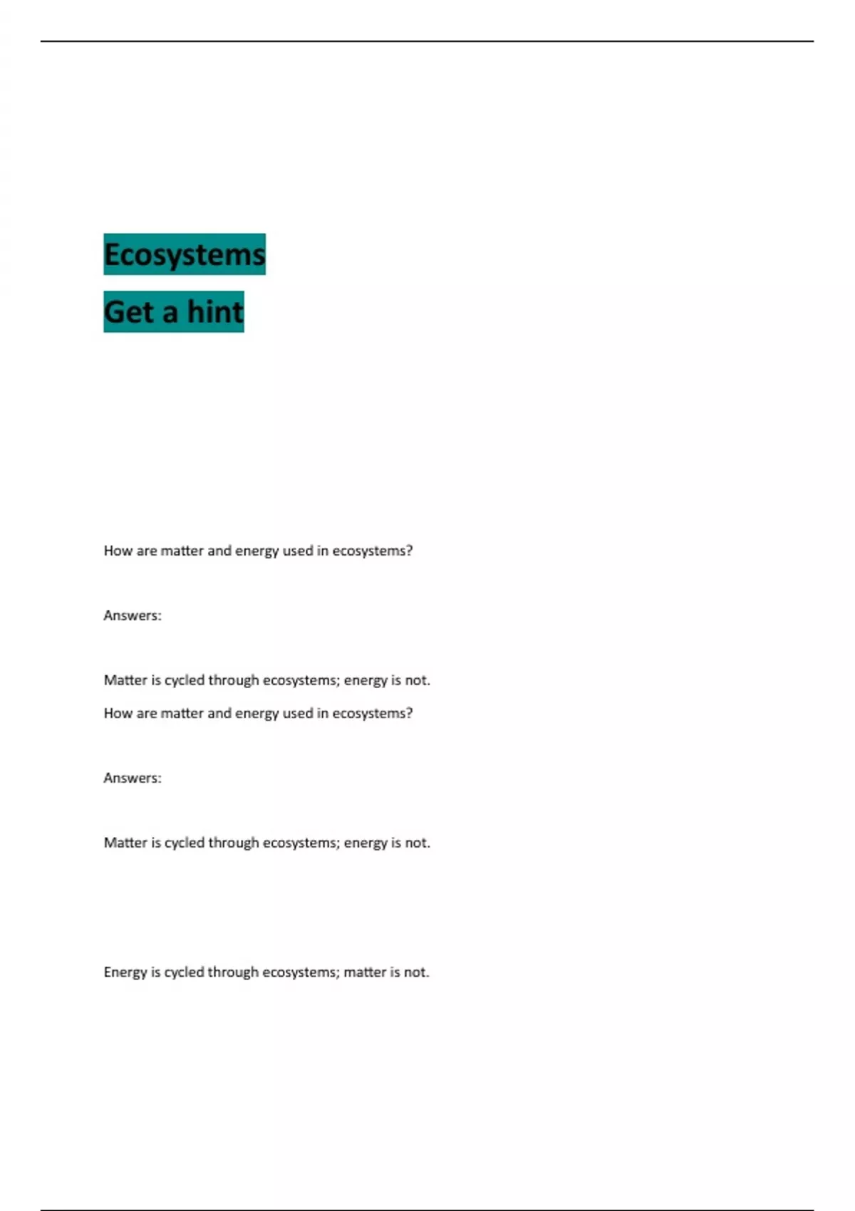 Matter is used in ecosystems; energy is not - ✔✔ANSW✔✔..Selected Answer: